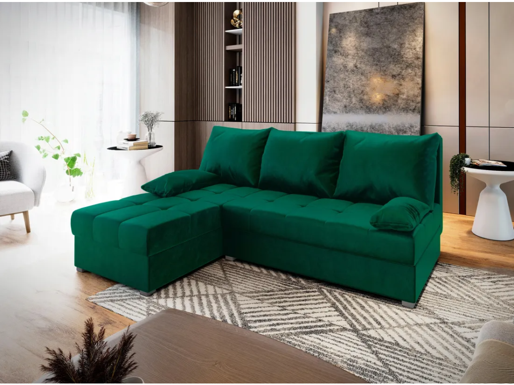 OFERTA Canapea coltar extensibila verde inchis ZENA, reversibila calitatea II