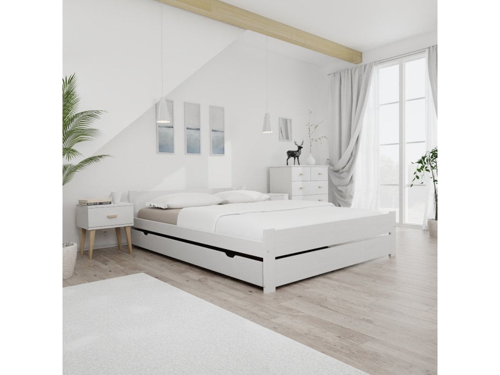 - Posibilitatea de achiziționare a unei cutii de depozitare sub pat și noptiere