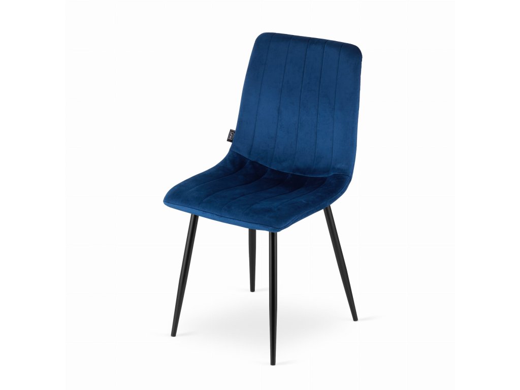 OFERTA Scaun de catifea albastru LAVA cu picioare negre Calitatea a II-a