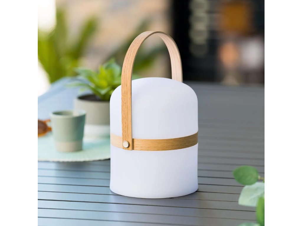 Lampă de exterior cu mâner de lemn subliniază atmosfera nordică. Prin designul său simplu, dar gândit, se potrivește cu diverse exterioare. Accesoriu de grădină original pentru serile lungi de vară. Datorită mânerului de lemn puteți agăța lampa Kiara, în stil scandinavic, de o ramură de copac sau oriunde pe terasă.