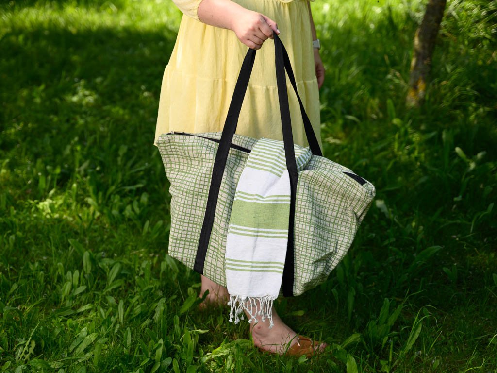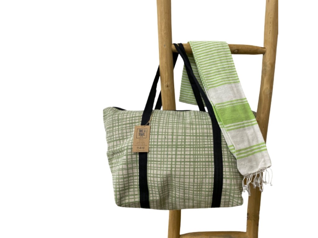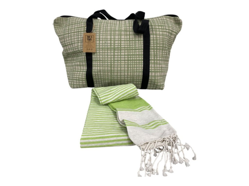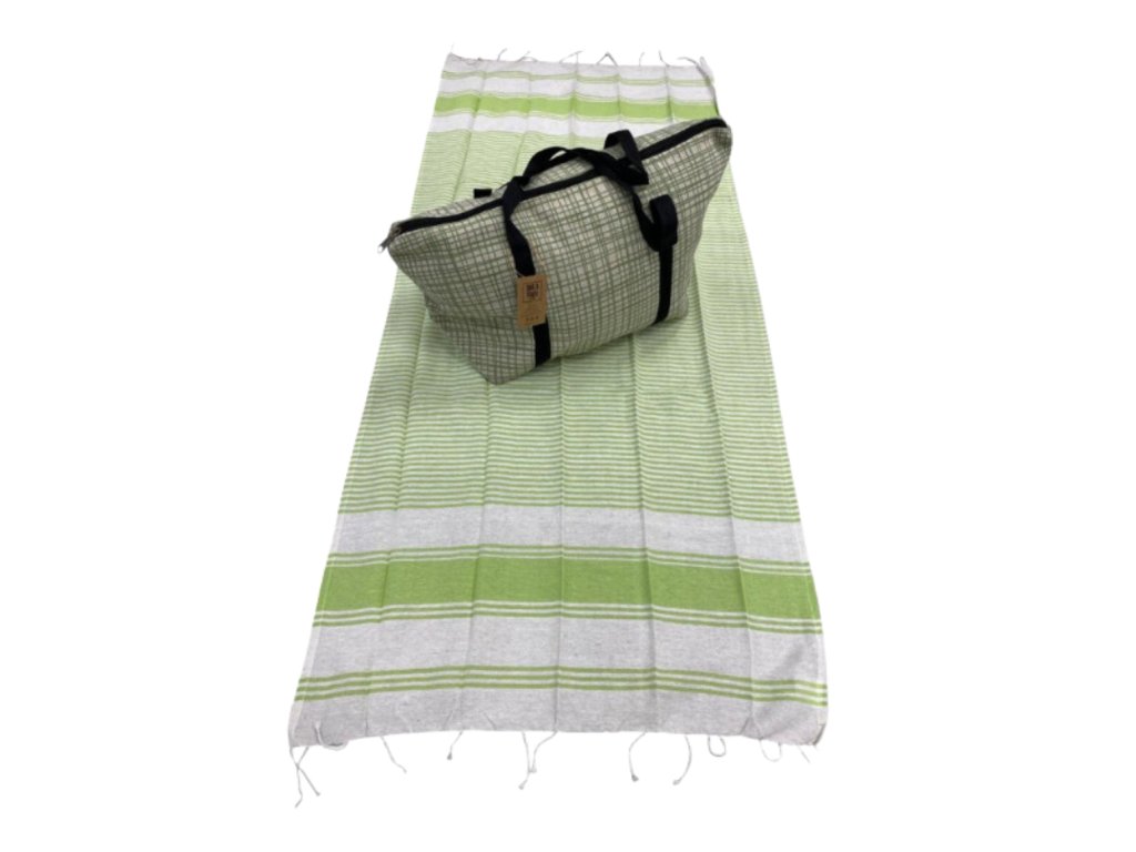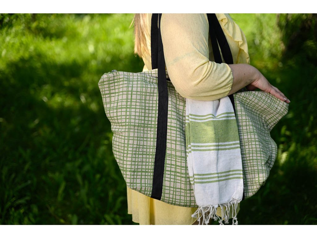 Set elegant geanta de plaja + prosop HAMAM 75x150 cm, verde