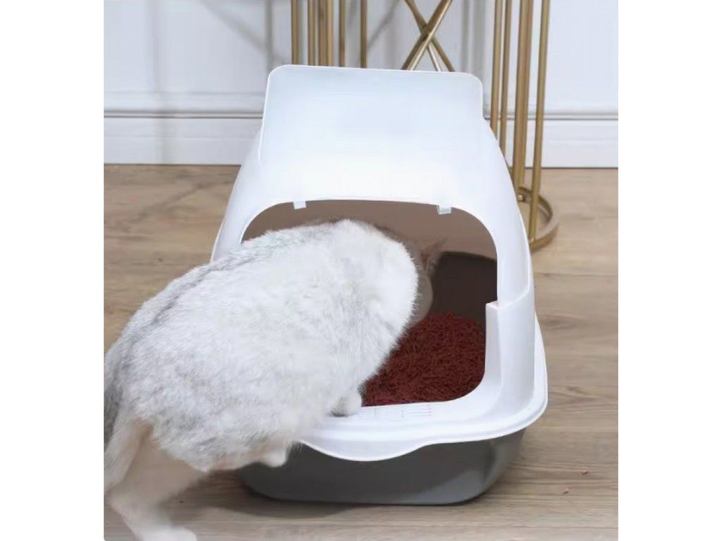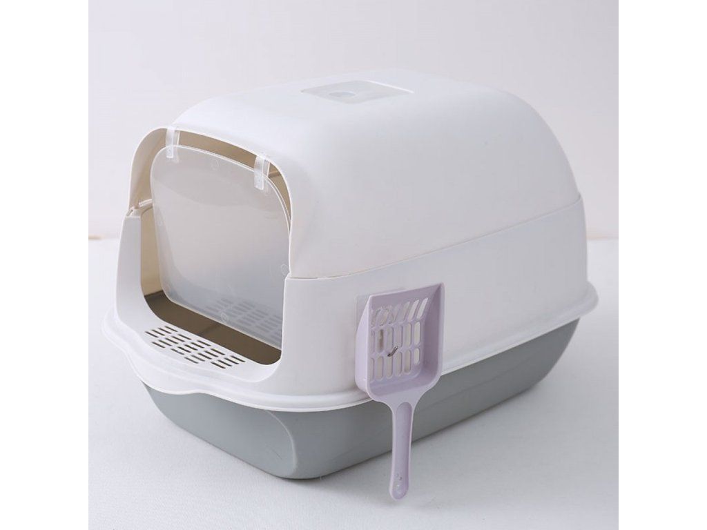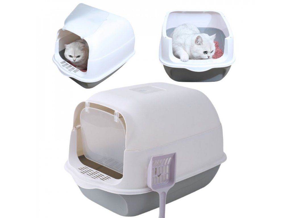 Litiera acoperita pentru pisici alb-gri LITTE