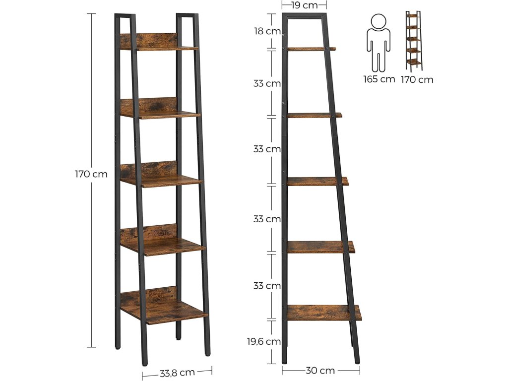 Raft TAYLOR 5 polite 170x33,8 cm, rustic maro