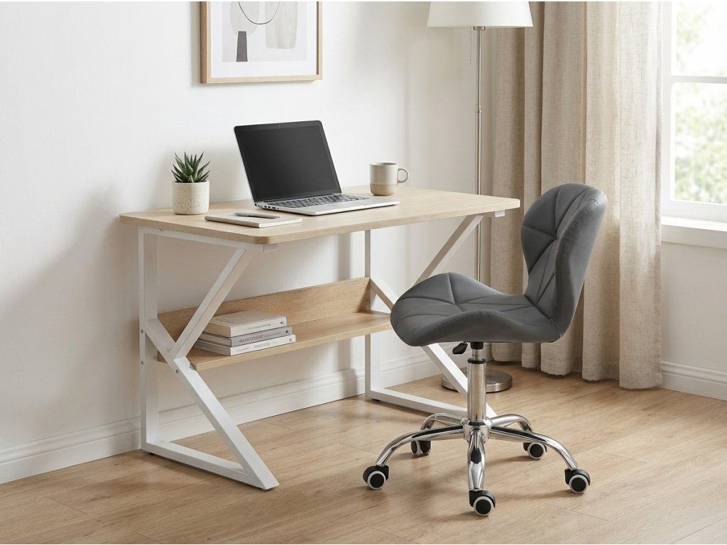 Acest birou de lucru practic este alegerea ideală pentru cei care caută o combinație de funcționalitate și design modern. Datorită dimensiunilor sale compacte, este potrivit și pentru apartamente mai mici sau camere de studenți și oferă suficient spațiu pentru tot ce aveți nevoie să aveți la îndemână. Creați un mediu de lucru inspirat, care să sprijine concentrarea și, în același timp, să arate estetic și curat. Noul dvs. spațiu de lucru poate fi cheia unei mai bune organizări și a unei liniște mai mari în timpul zilei.