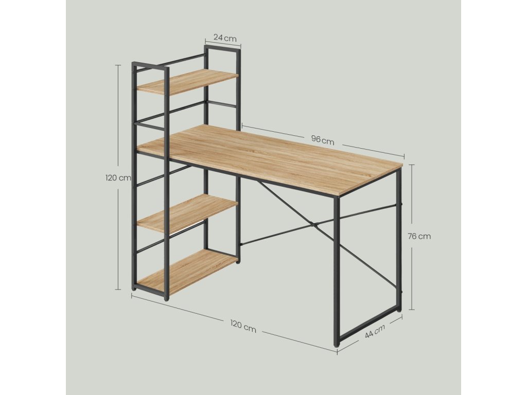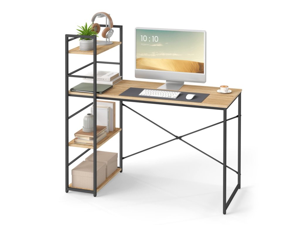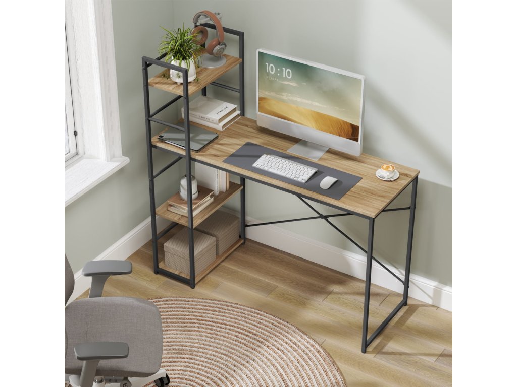 Acest birou industrial cu raft este soluția ideală pentru cei care caută mobilier practic și stilat, cu un aspect modern. Combinația dintre structura metalică neagră și blatul în nuanță maro rustică creează o piesă stabilă și atrăgătoare care va adăuga interiorului dumneavoastră un caracter unic. Datorită celor trei polițe practice, oferă spațiu de depozitare suficient pentru cărți, decorațiuni sau necesități de lucru, fiind astfel o alegere excelentă pentru birou, cabinet sau living. În plus, blatul rezistent la apă asigură o lungă durată de viață și întreținere ușoară, lucru apreciat în utilizarea zilnică. Acest birou este proiectat pentru a îmbina estetica și funcționalitatea, devenind astfel un element deosebit al oricărui interior.