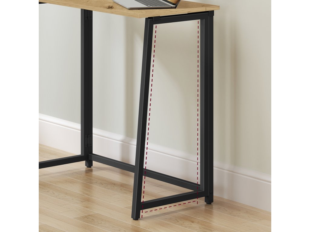 Masa pliabilă practică este o soluție excelentă pentru cei care au nevoie de un spațiu de lucru flexibil. Datorită structurii compacte, o puteți așeza ușor și în interioare mai mici, iar când nu aveți nevoie de ea, pur și simplu o pliați și eliberați spațiul. Combinația dintre metal și decorul din lemn creează un aspect modern și se potrivește atât în birou, cât și în living. Masa devine un ajutor practic în timpul lucrului, studiului și activităților de timp liber.