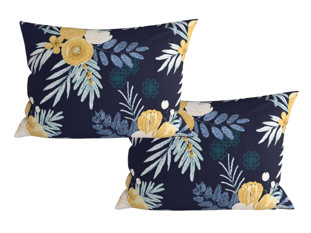 Set de 2 huse decorative pentru perne din microfibra FLOWERISH 50x70 cm, albastru inchis