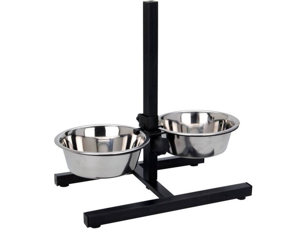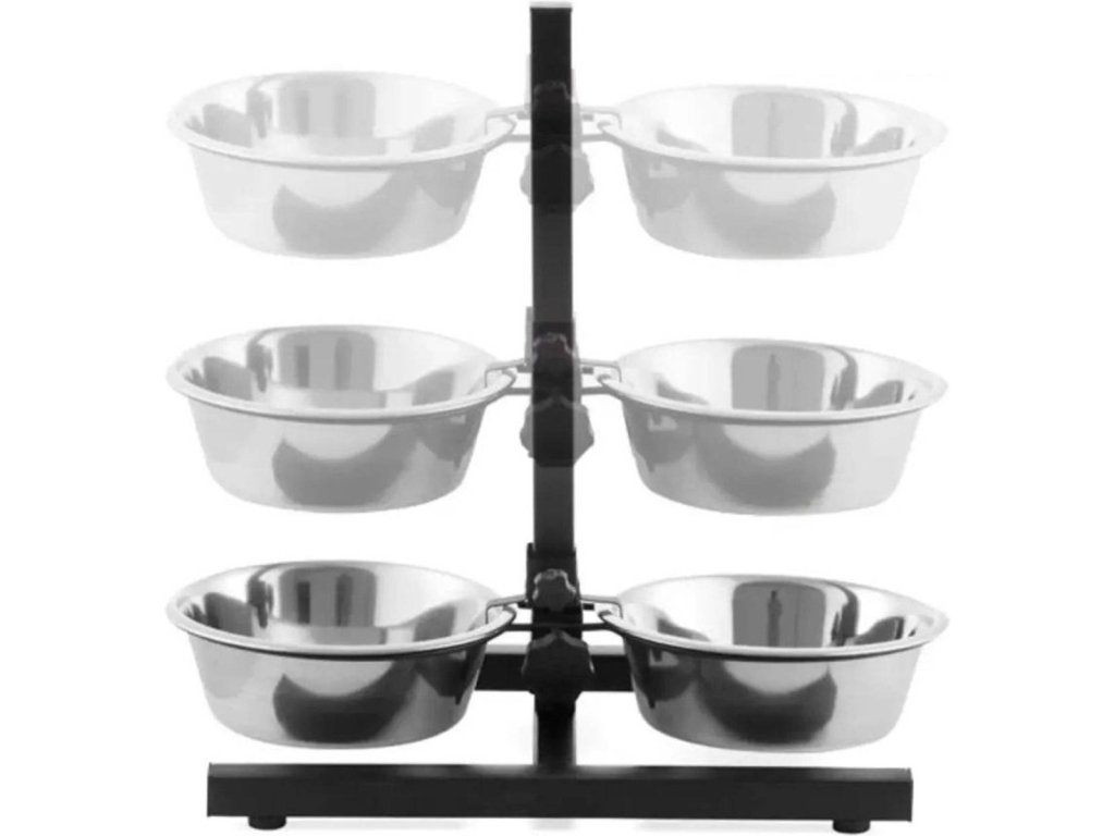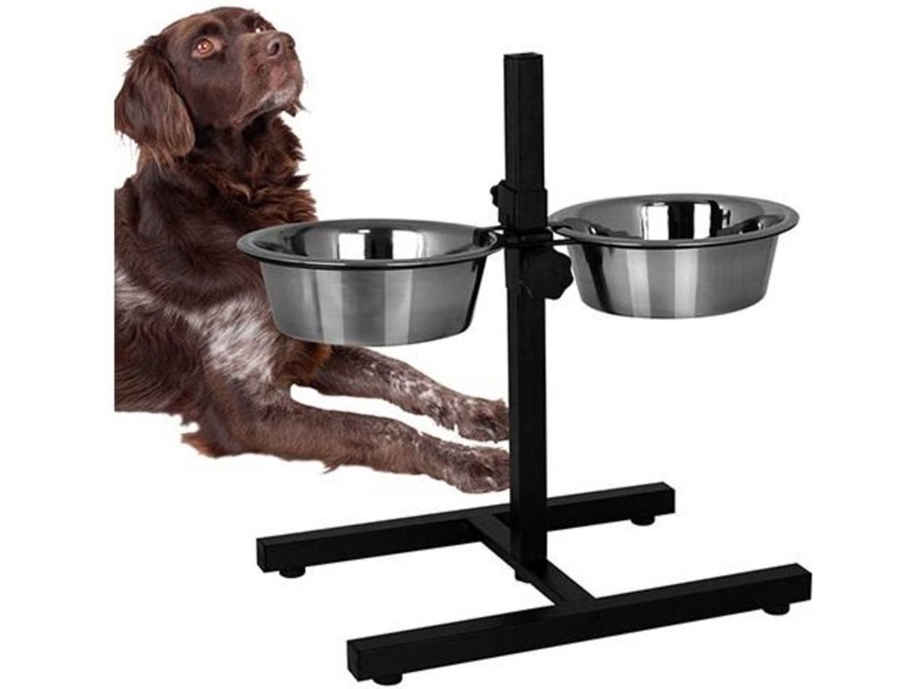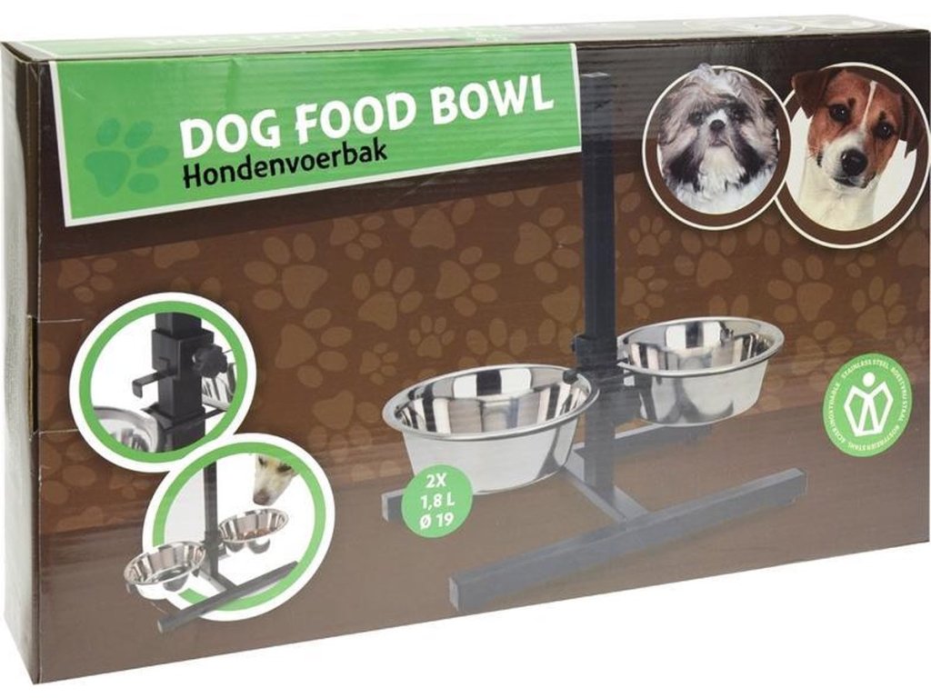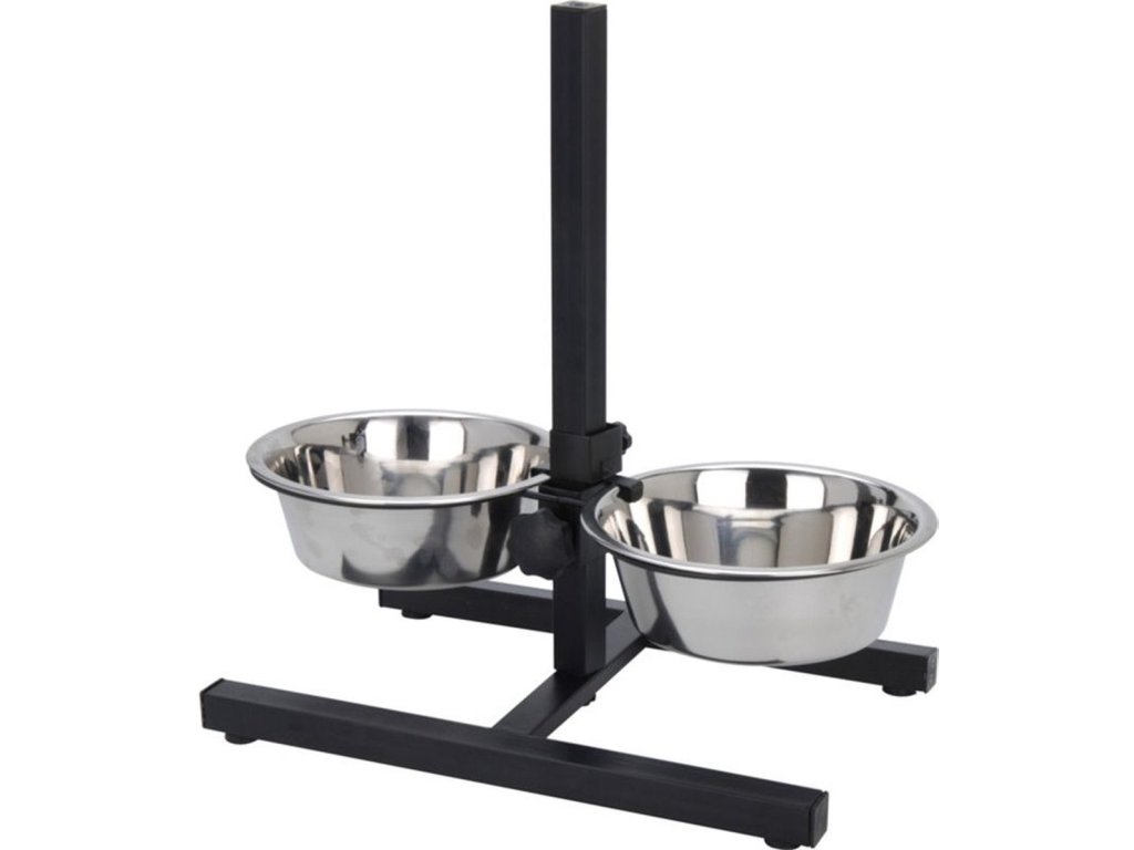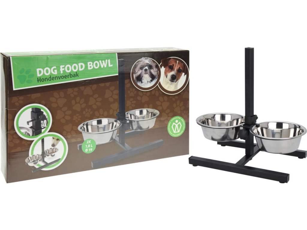 - Conținutul pachetului: 1x suport reglabil pentru castroane + 2x castron din oțel inoxidabil