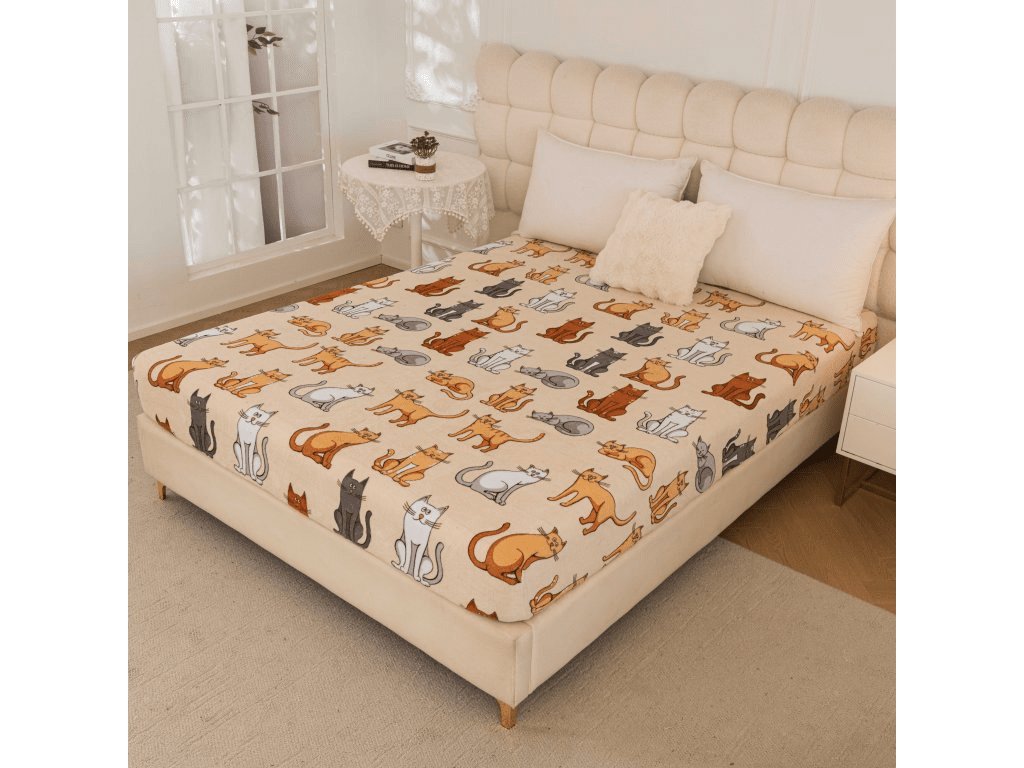 Cearsaf din microplus COLORED CATS 160x200 cm crem