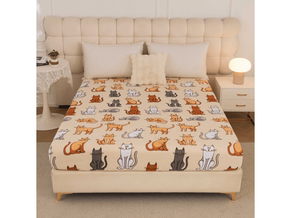 Cearsaf Cocolino microplus cu elastic COLORED CATS 90x200 cm crem