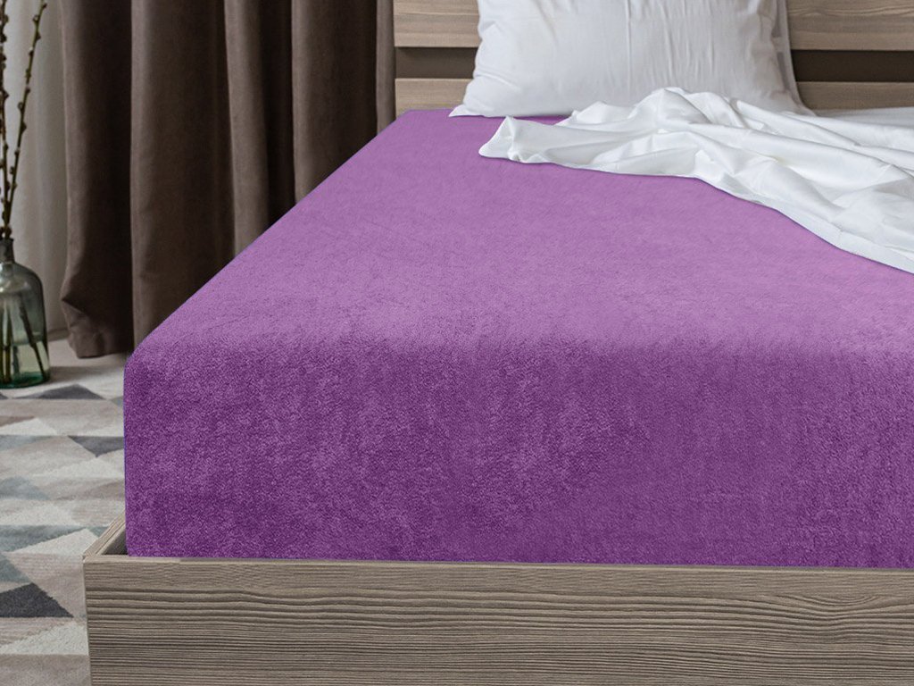 Cearsaf Frotir cu elastic 90x200 cm mov inchis