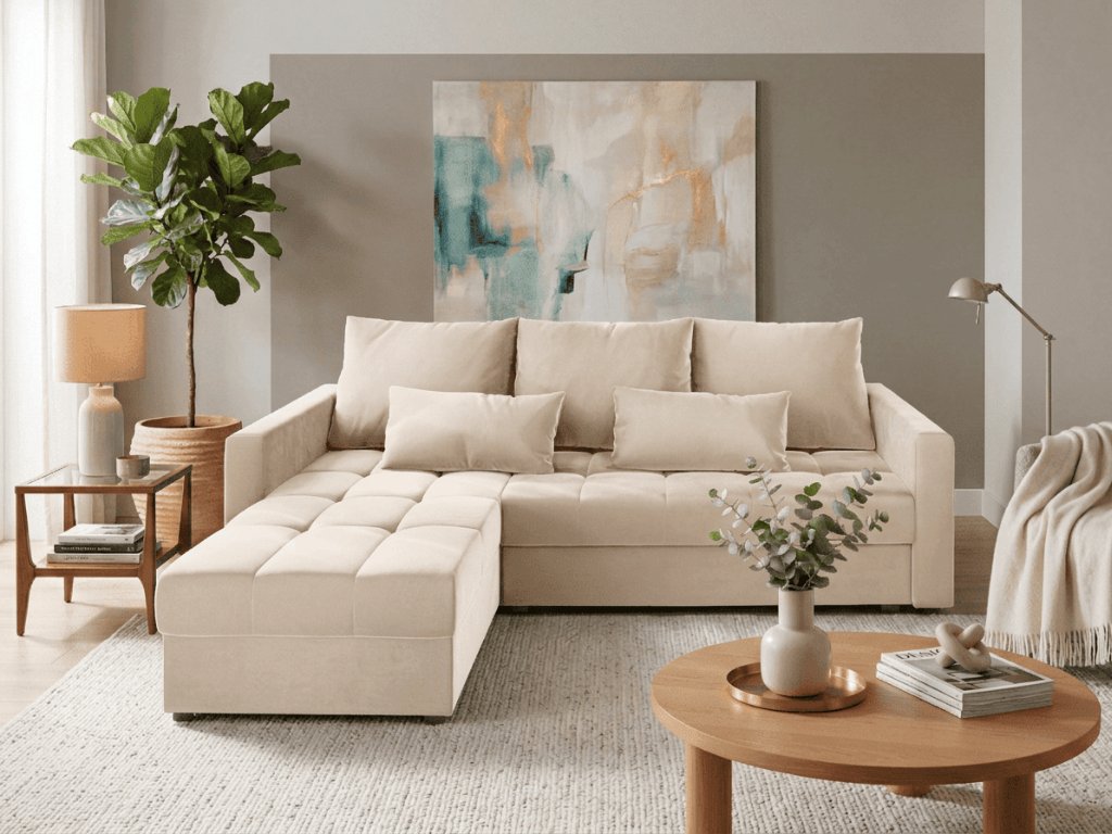Canapea coltar extensibil ZENOVA 220 x 140 cm, reversibila – crem PAROS 02