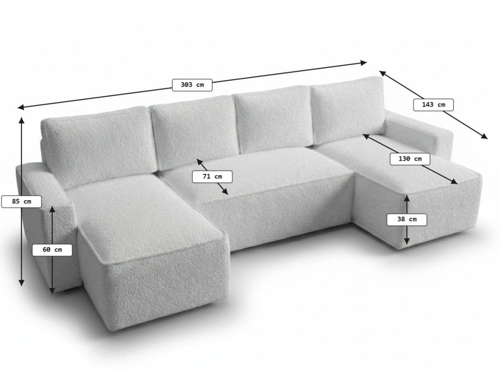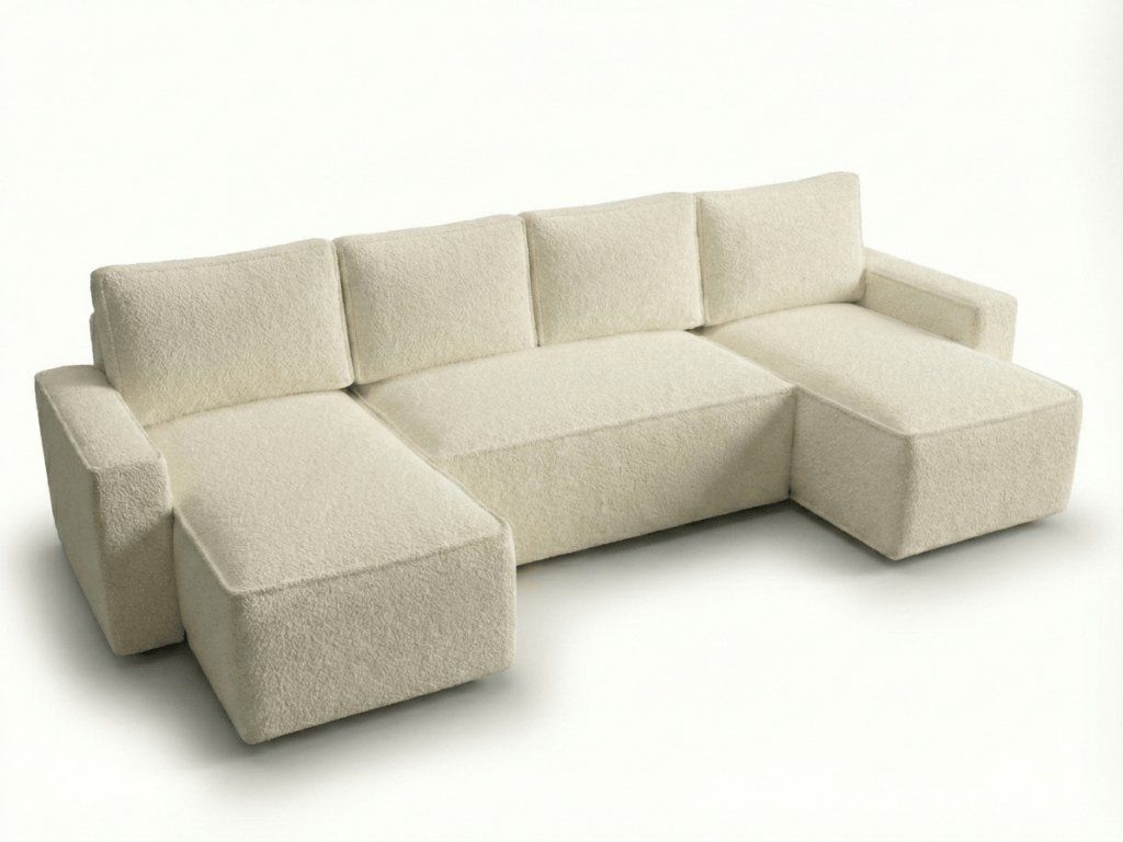Canapea extensibila in forma de U SMART BOUCLE, crem, 303x140 cm