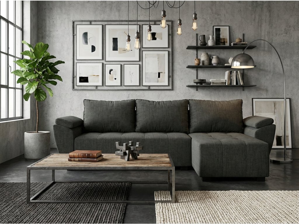 Canapea extensibila reversibila in forma de L LIVARO 251x140 cm, gri inchis