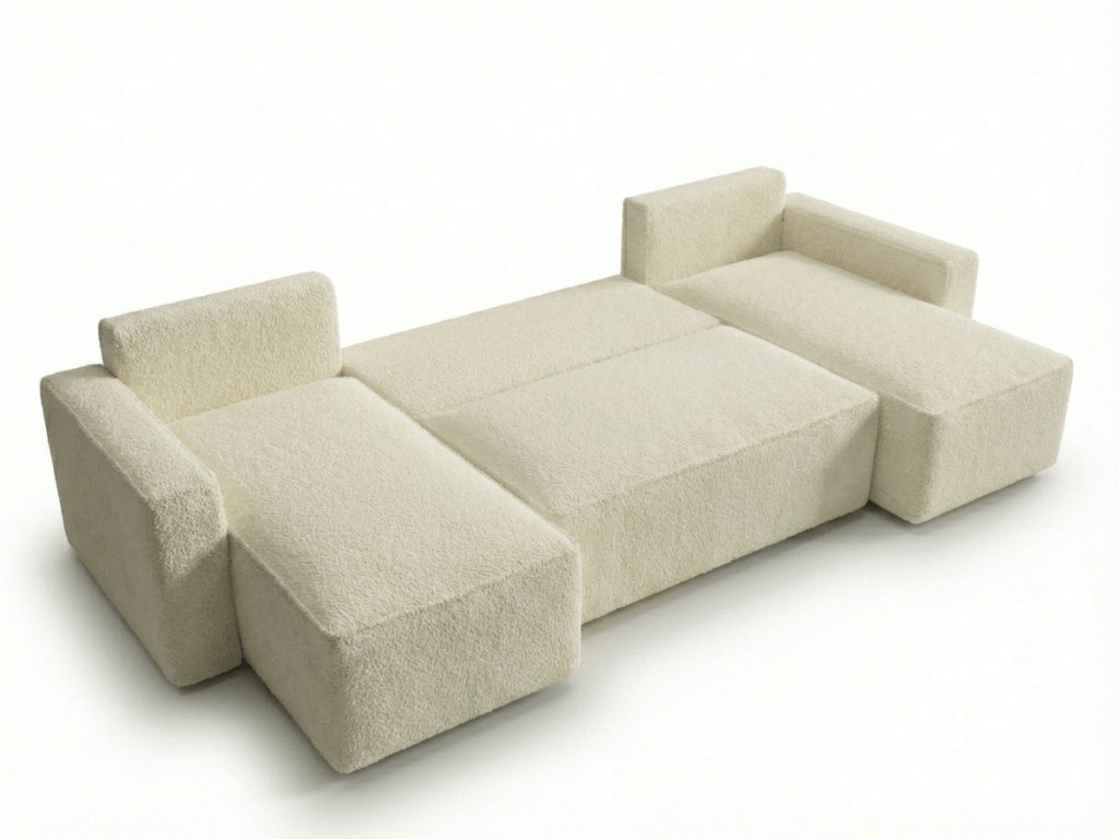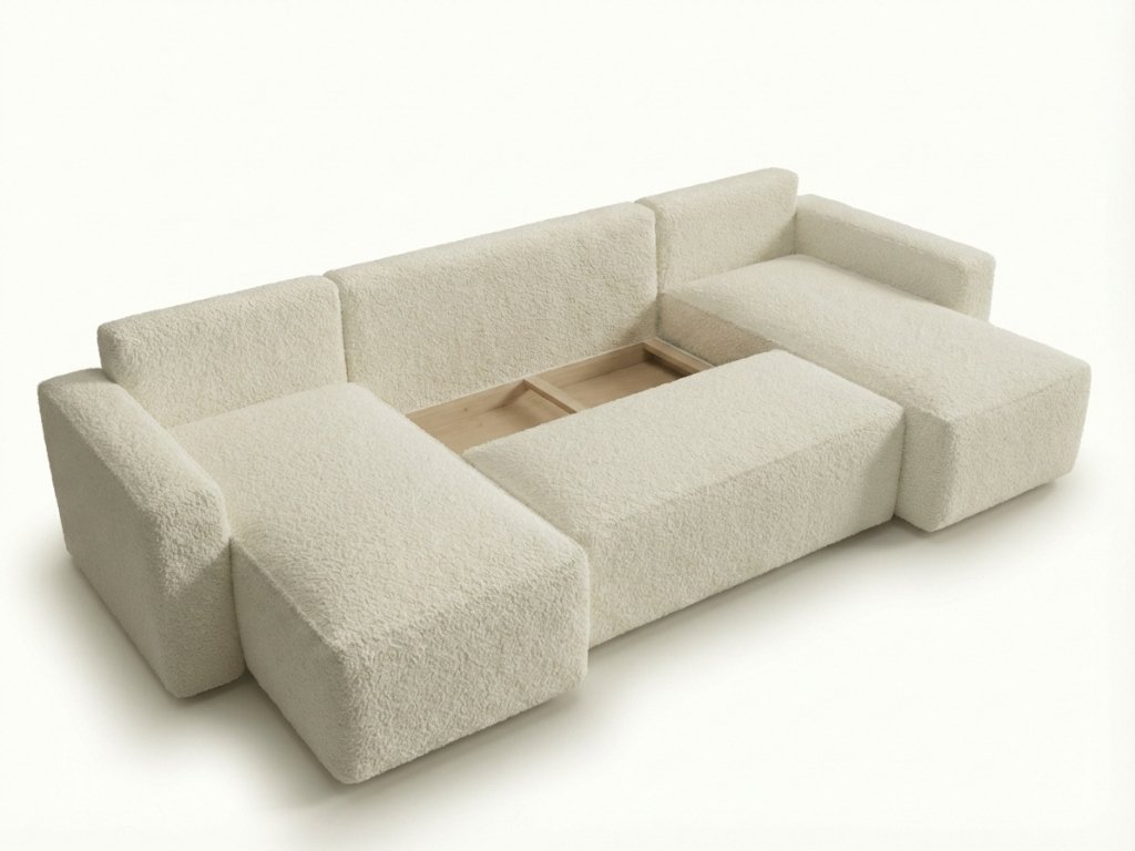 Set canapea extensibila in forma de U SMART BOUCLE 303x143 cm, gri-bej