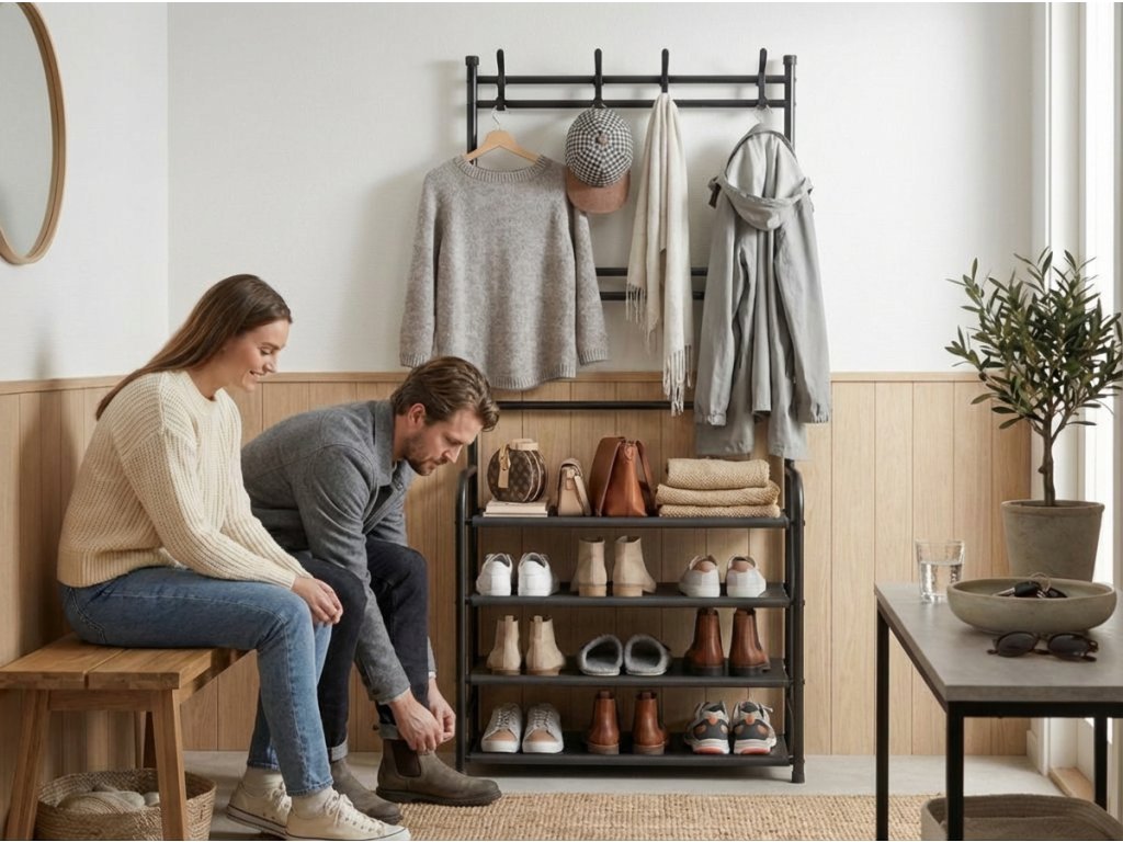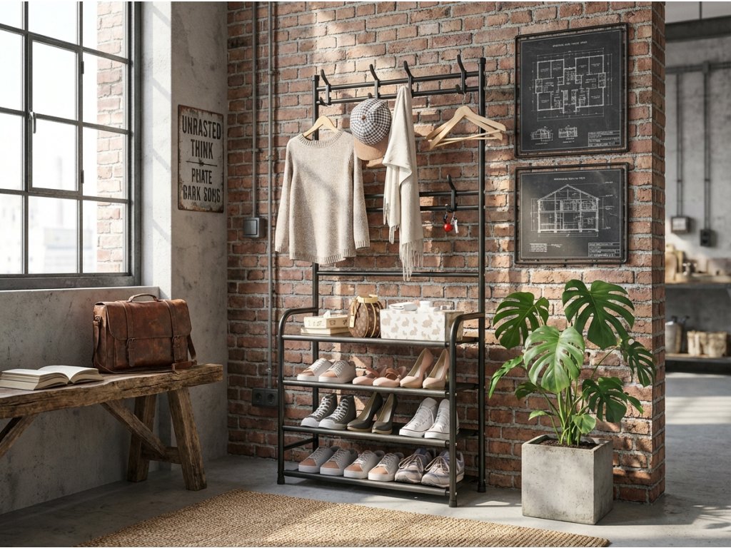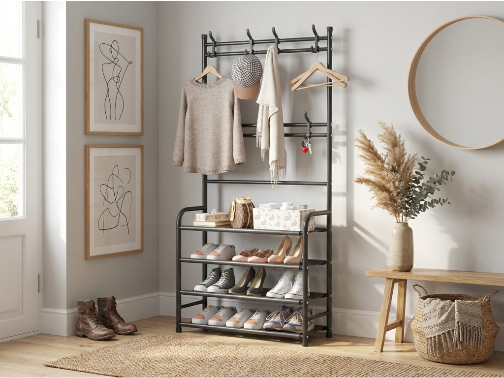 Cuier cu suport pentru incaltaminte CLOTHORY 80x152 cm, negru