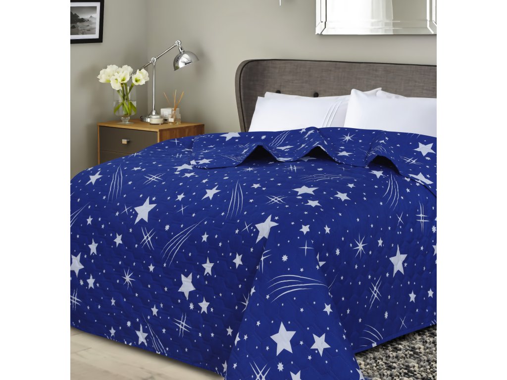 Cuvertura de pat cu model NIGHT SKY HEXAGON, albastru
