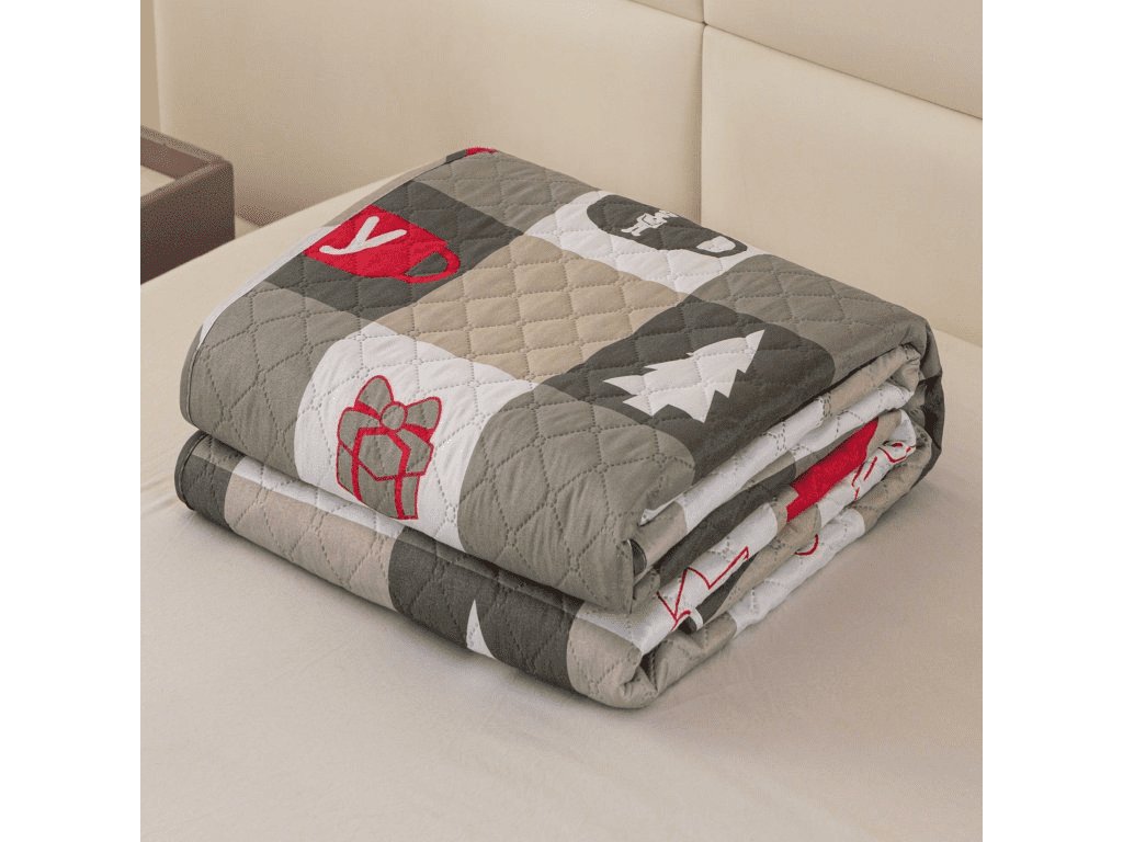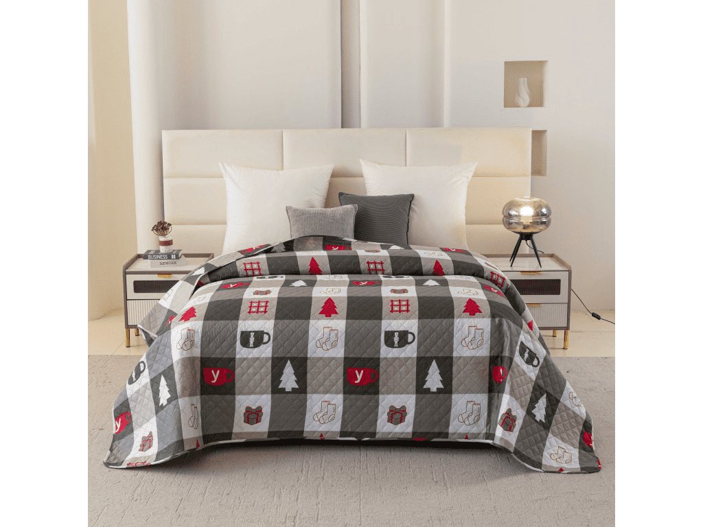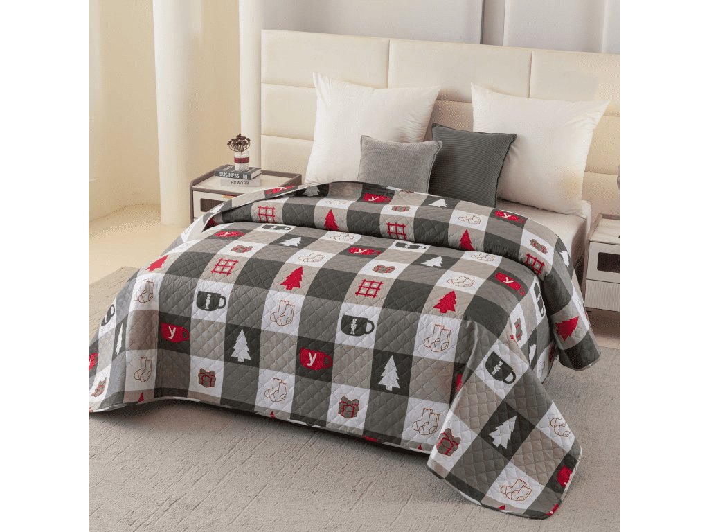 Cuvertura de pat cu model CHRISTMAS SOCKS, verde