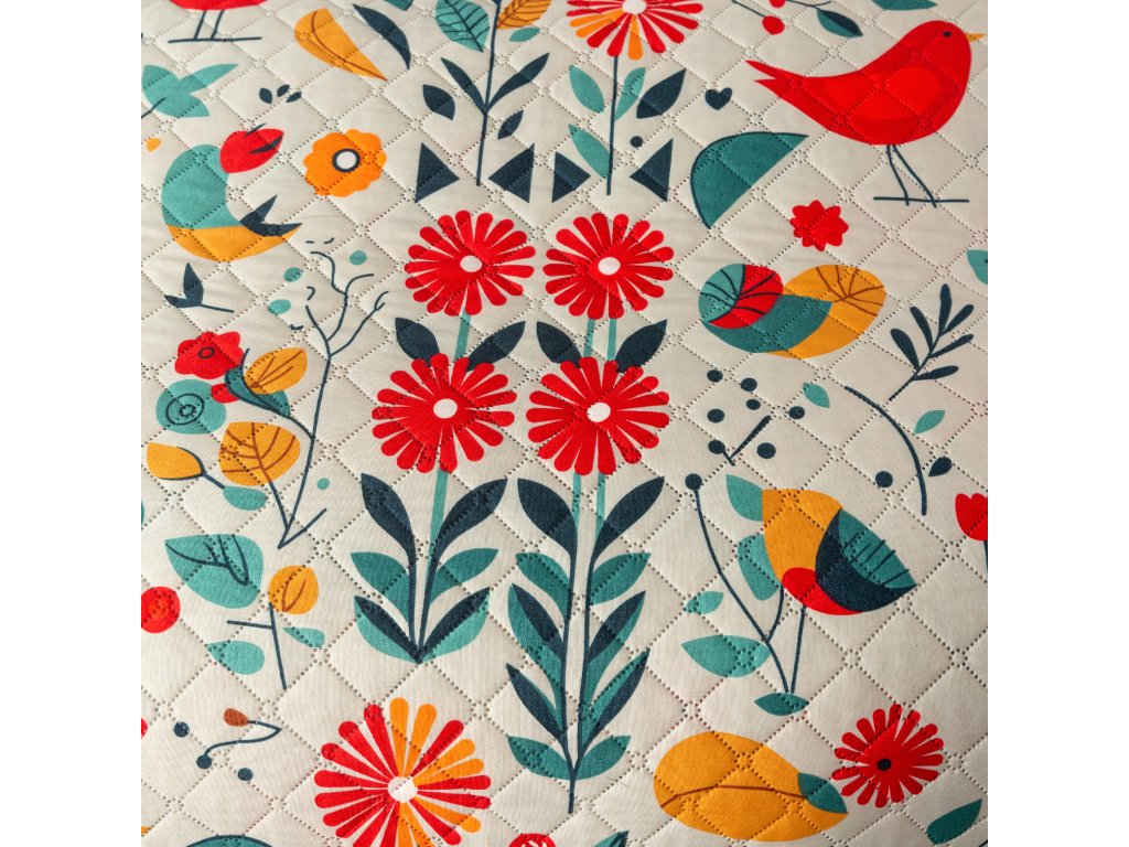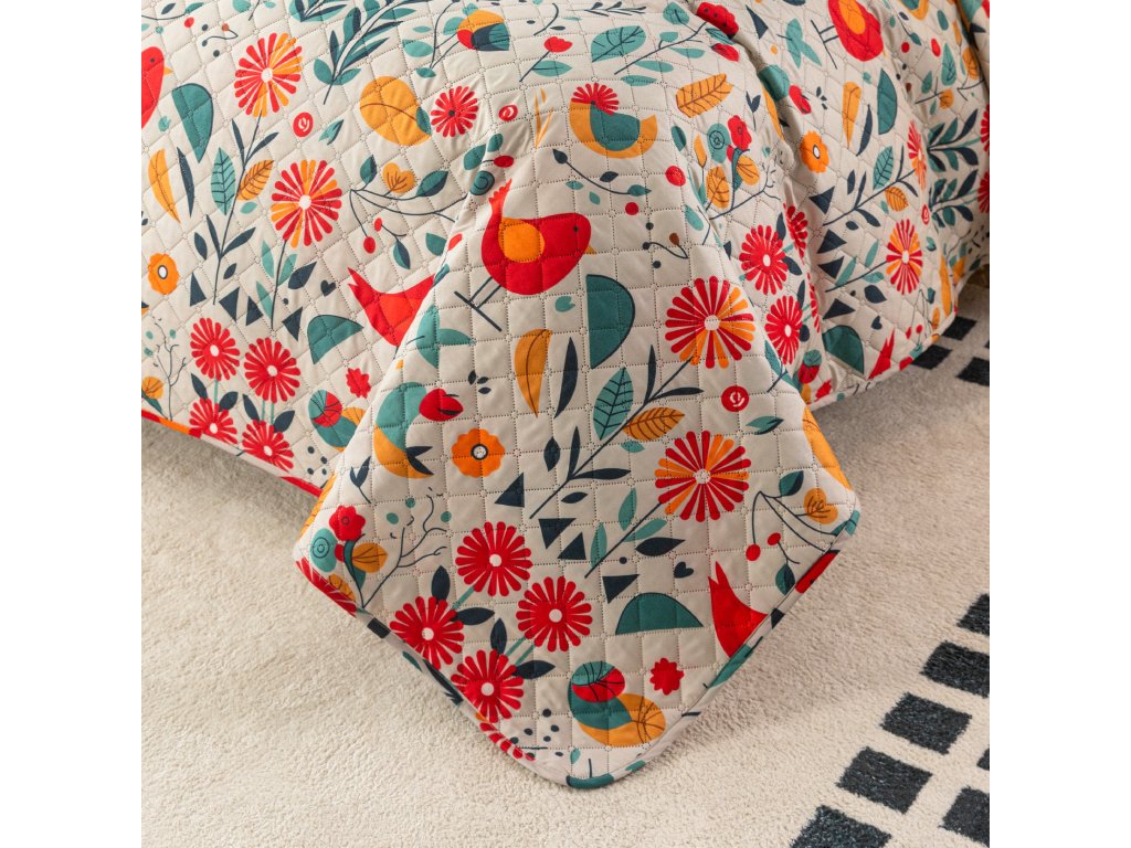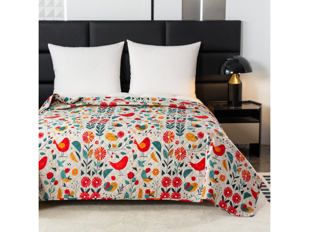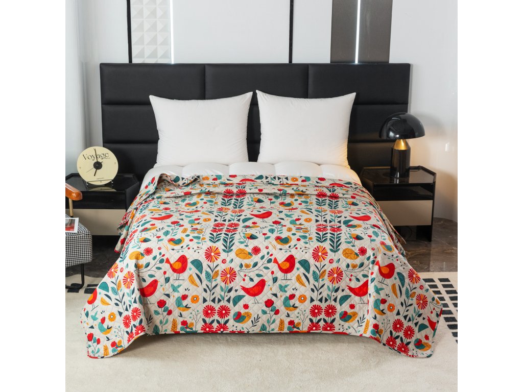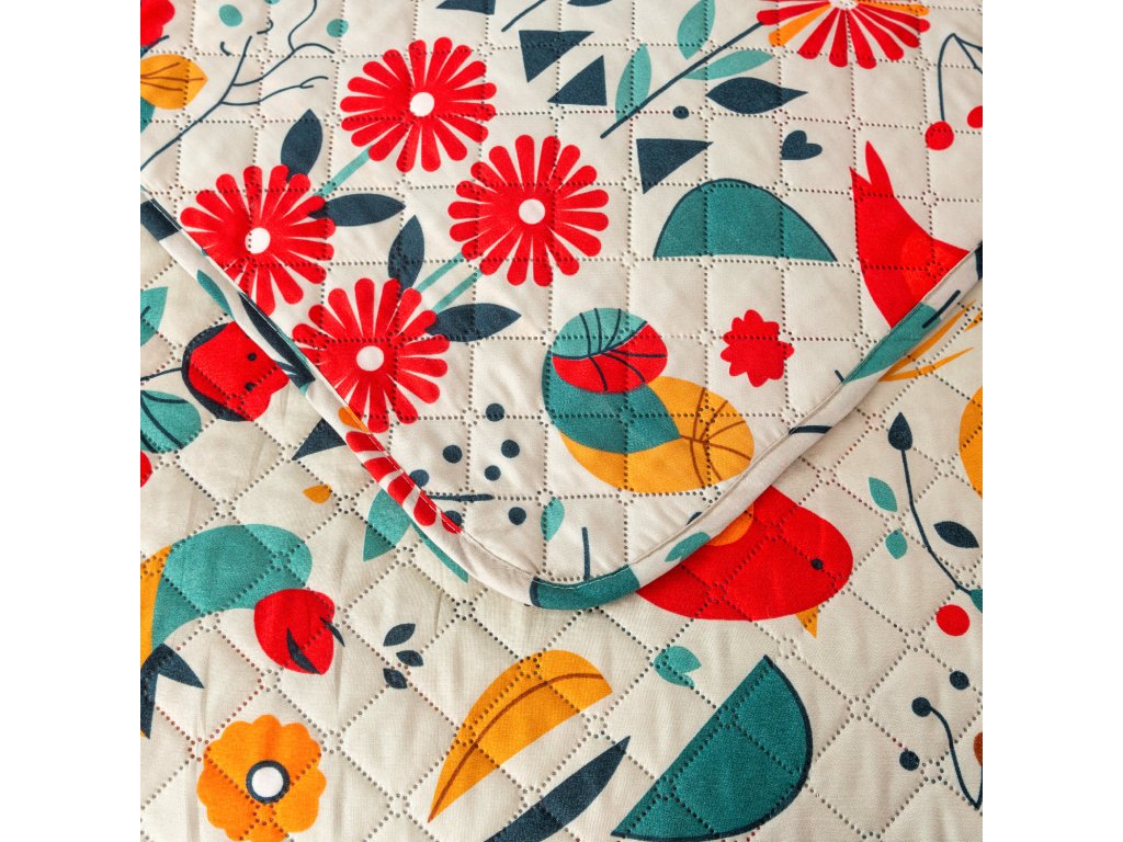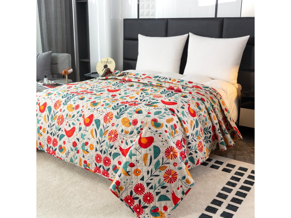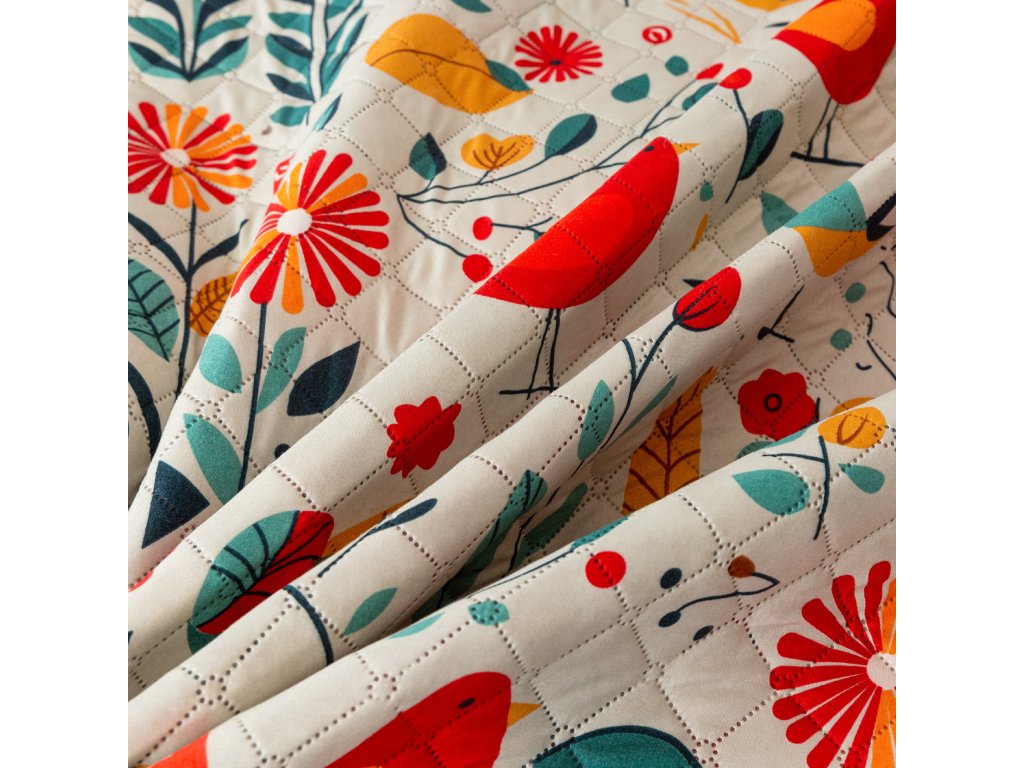 Reîmprospătați-vă dormitorul cu o cuvertură de pat, care aduce un motiv unic al naturii. Modelul colorat de păsări și flori pe un fundal deschis va oferi interiorului dumneavoastră o atmosferă originală și primitoare.