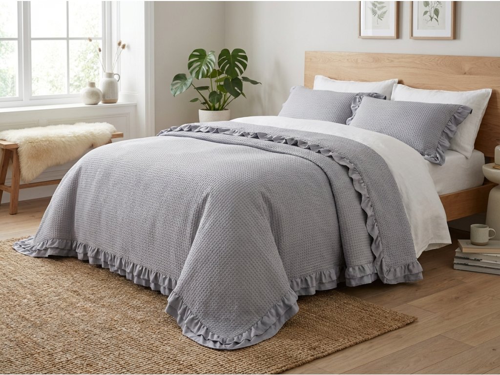 Cea mai simplă cale de a perfecționa dormitorul este prin intermediul textilelor pentru casă. Combinația de pleduri confortabile, perne pufoase și covoare moi transformă dormitorul într-un loc primitor și armonios pentru relaxare. Păturile pe pat waffel sau matlasate protejează plapumele și lenjeria de pat de praf și adaugă interiorului un aspect îngrijit. Supraetajarea textilelor simbolizează stilul danez hygge, inspirat de filosofia nordică a bucuriei lucrurilor mărunte zilnice. Înconjurați-vă de materiale plăcute și creați un mediu în care să vă bucurați în fiecare zi de momente de liniște și confort.