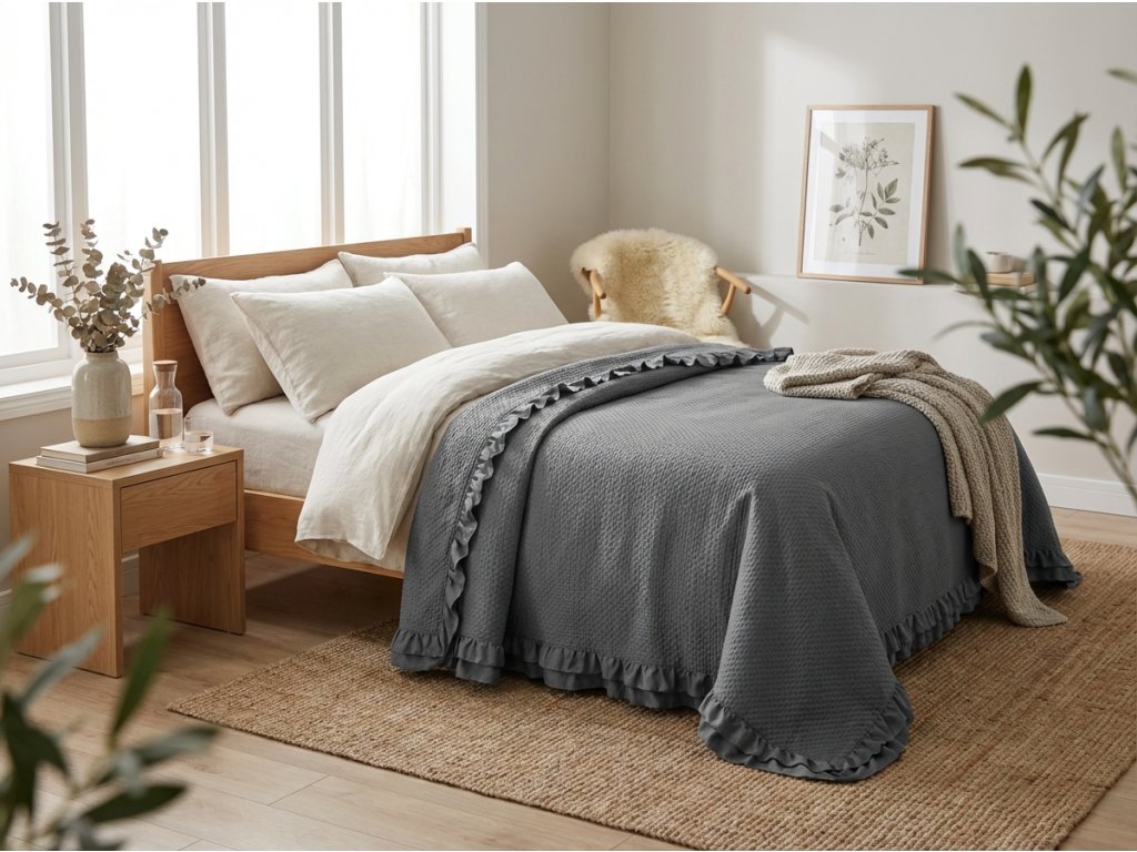 Cea mai simplă cale de a perfecționa dormitorul este prin textilele pentru casă. Combinația de pleduri confortabile, pernițe pufoase și covoare moi transformă dormitorul într-un loc plin de confort și armonie pentru relaxarea zilnică. Păturile tip vafele și cele matlasate protejează pilotele și lenjeria de pat de praf și, în același timp, conferă interiorului un aspect îngrijit și elegant. Suprapunerea textilă simbolizează stilul danez hygge, care derivă din filosofia nordică despre bucuria momentelor obișnuite. Înconjurați-vă de materiale plăcute și creați-vă un mediu unde să vă bucurați zilnic de momente de liniște și bunăstare.