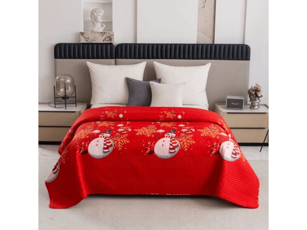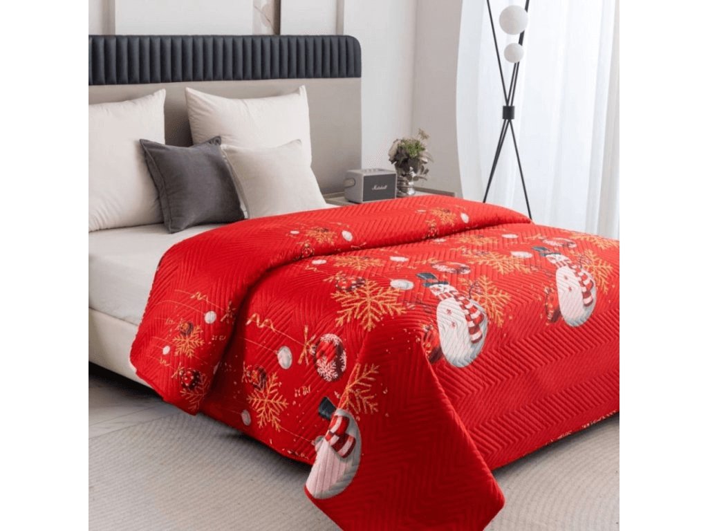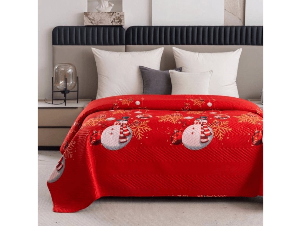 Cuvertura de pat WHITE SNOWMAN, rosu