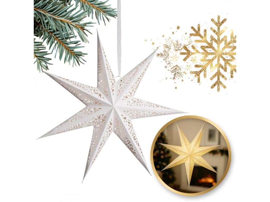 Stea de hartie de Craciun cu sapte colturi AUREVIA 60 cm, alba