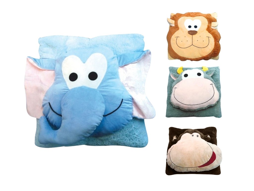 - Pernă de pluș cu motiv de leu, maimuță, văcuță sau elefant
