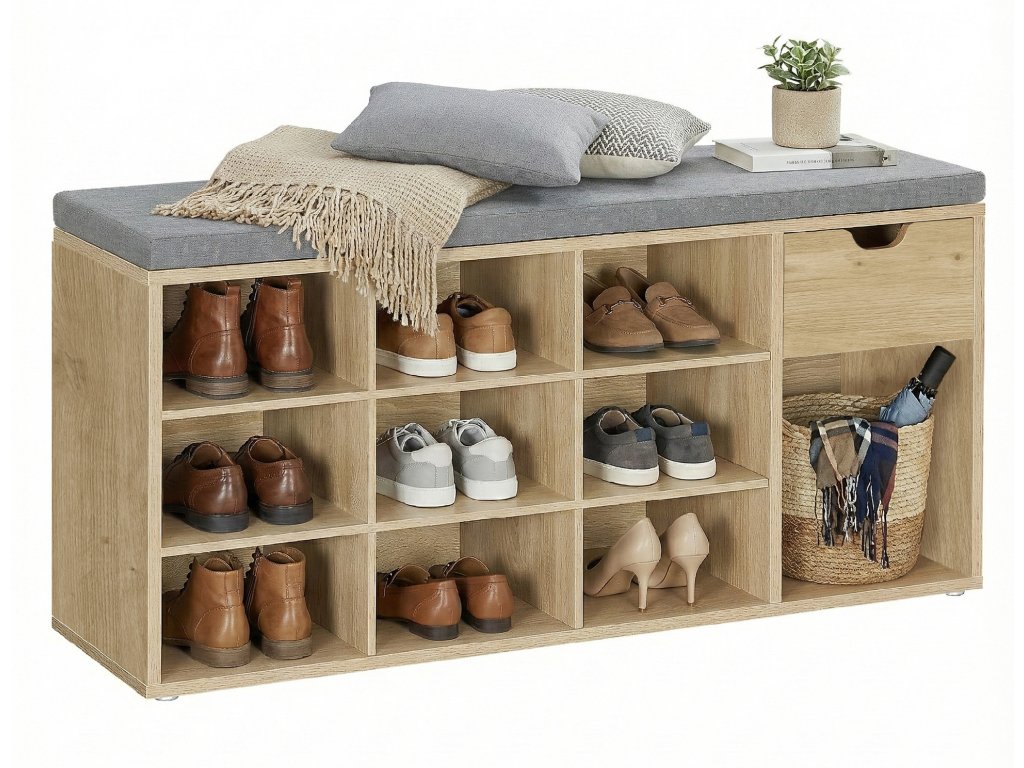 Acest suport pentru pantofi cu bancă integrată reprezintă o soluție funcțională pentru orice antreu. Combină un loc confortabil pentru a vă încălța cu suficient spațiu de depozitare pentru pantofi, accesorii sau obiecte mici pe care doriți să le aveți mereu la îndemână. Compartimentele deschise și spațiul închis permit o organizare clară a încălțămintei și ajută la păstrarea ordinii chiar și într-o gospodărie mai agitată. Datorită dimensiunilor compacte, este potrivit și pentru antreuri mai mici, unde valorifică la maximum spațiul disponibil. Pernița tapițată asigură confort și subliniază aspectul modern al suportului pentru pantofi, care se integrează ușor în diverse stiluri de interior.