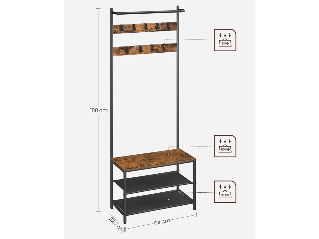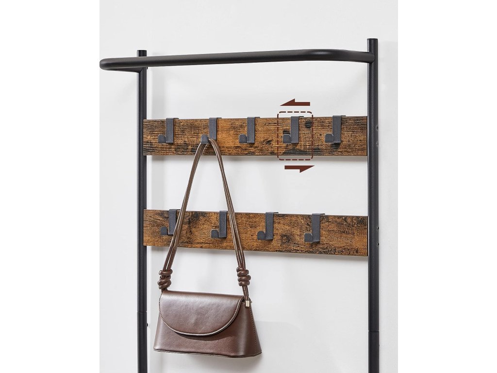 - 9 cârlige pe două niveluri – pentru jachete, genți sau accesorii