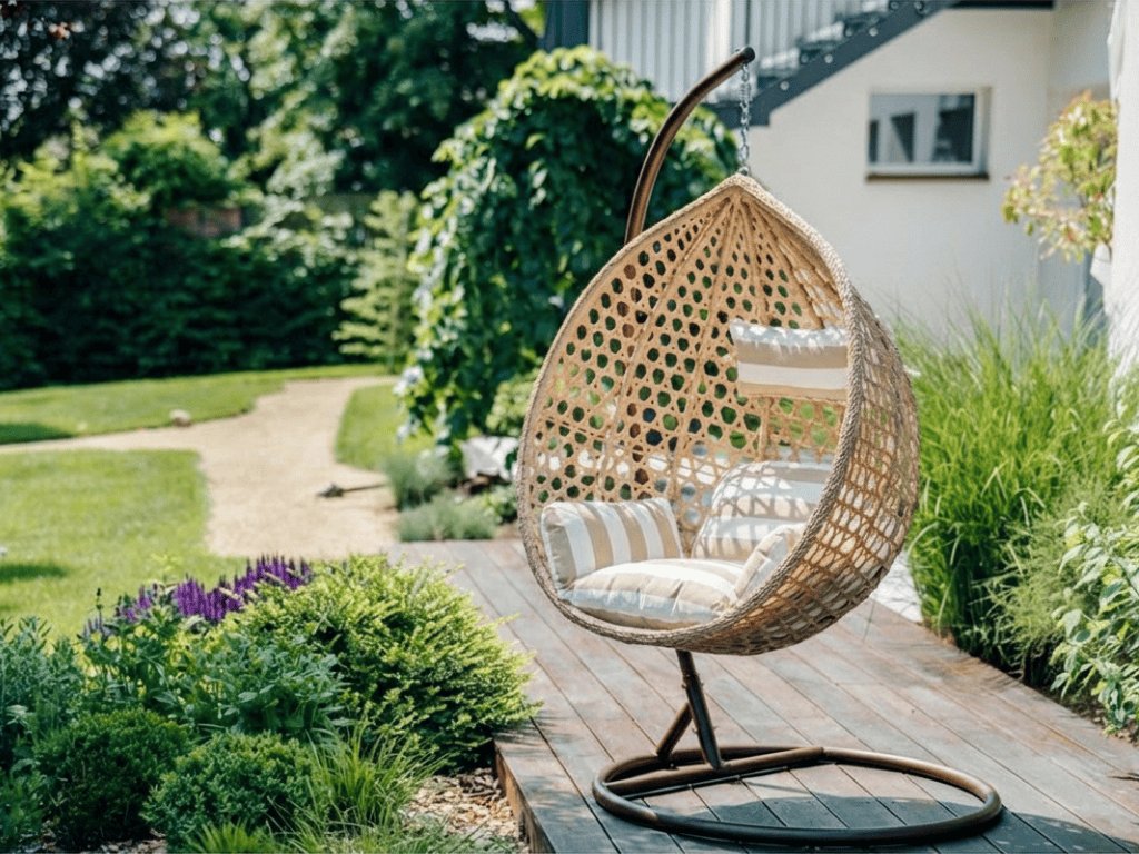 Scaun suspendat maro deschis TROPIKAL cu suport Cu suport