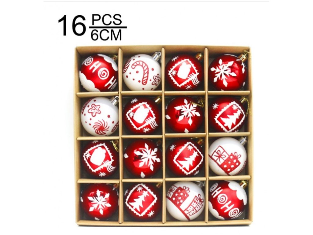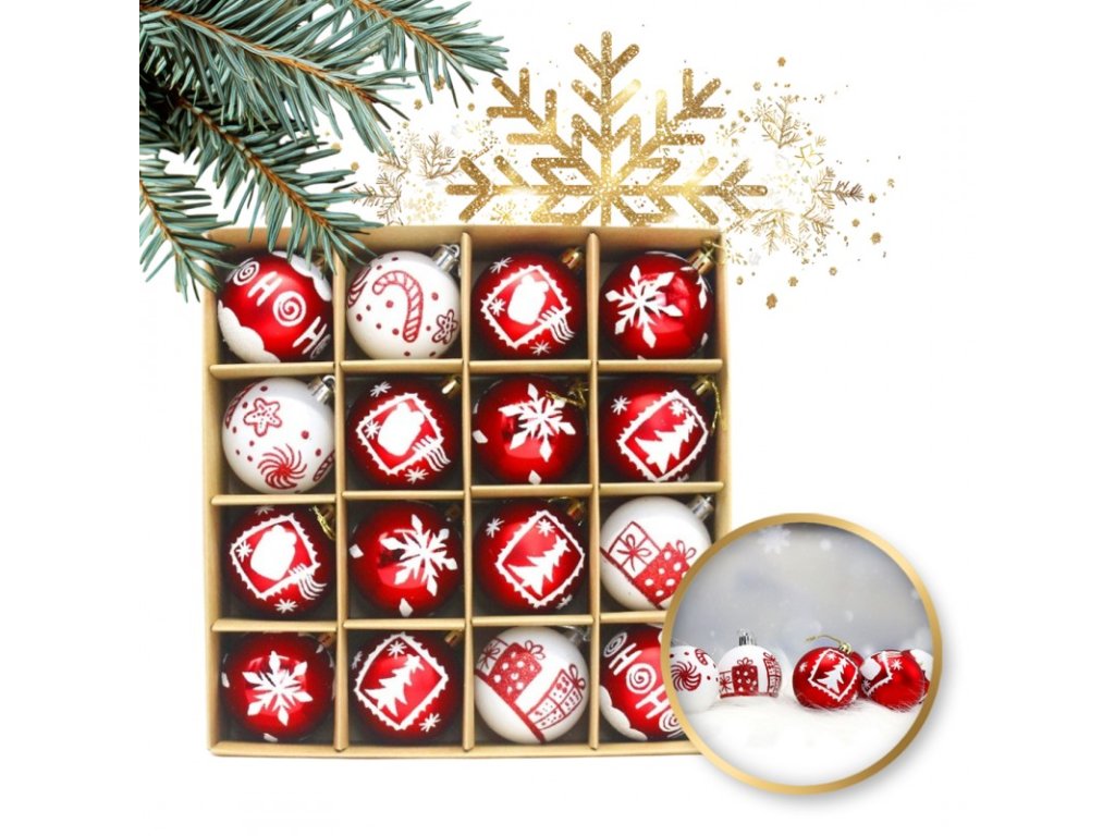 Set decoratiuni de Craciun RED&WHITE rosu-alb, 16 bucati