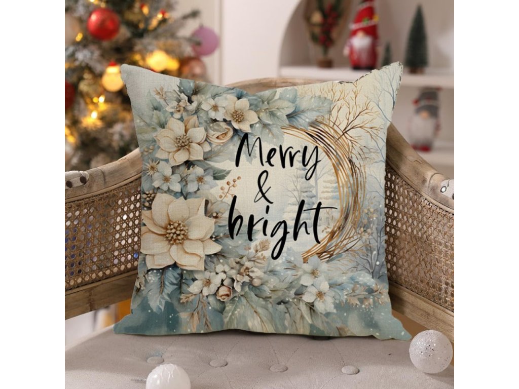 Fata de pernă de Craciun MERRY & BRIGHT 45x45 cm, bej
