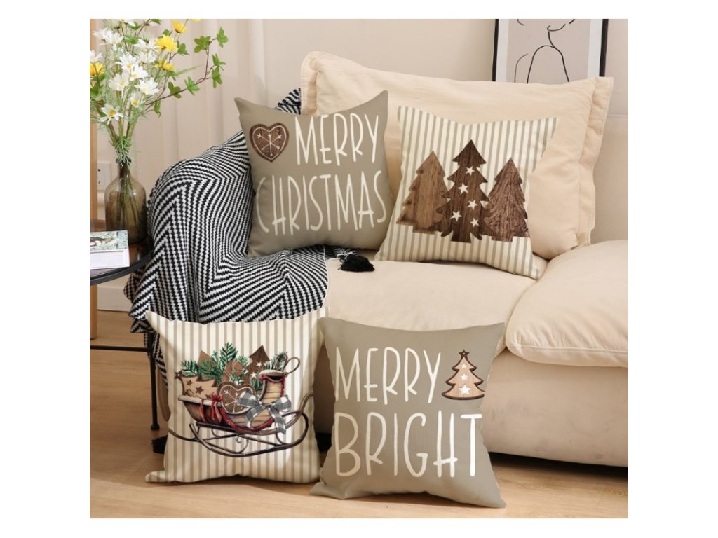 Husa de pernă de Craciun WOODEN TREES 45x45 cm, bej