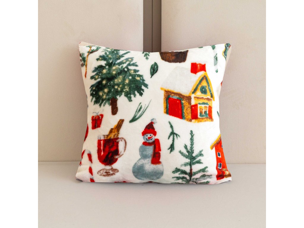 Husa din microplus pentru perna FESTIVE MAGIC 45x45 cm, alb
