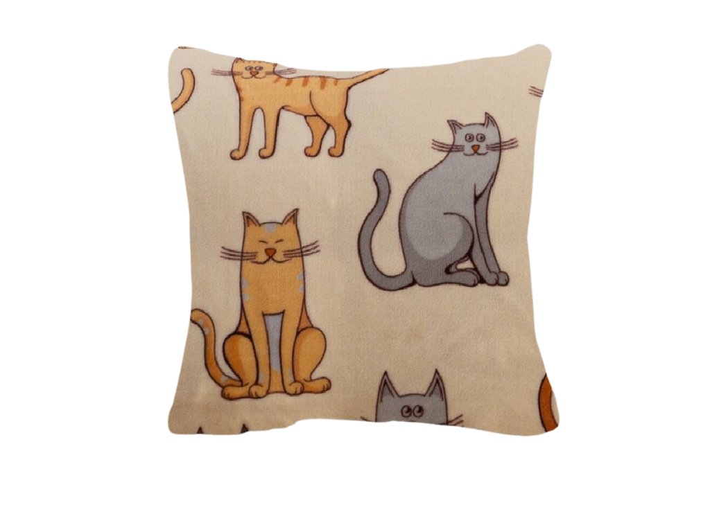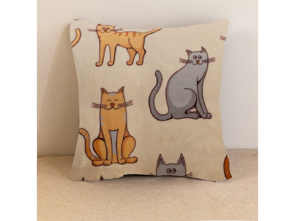Husa din microplus pentru pernuta COLORED CATS 45x45 cm, crem