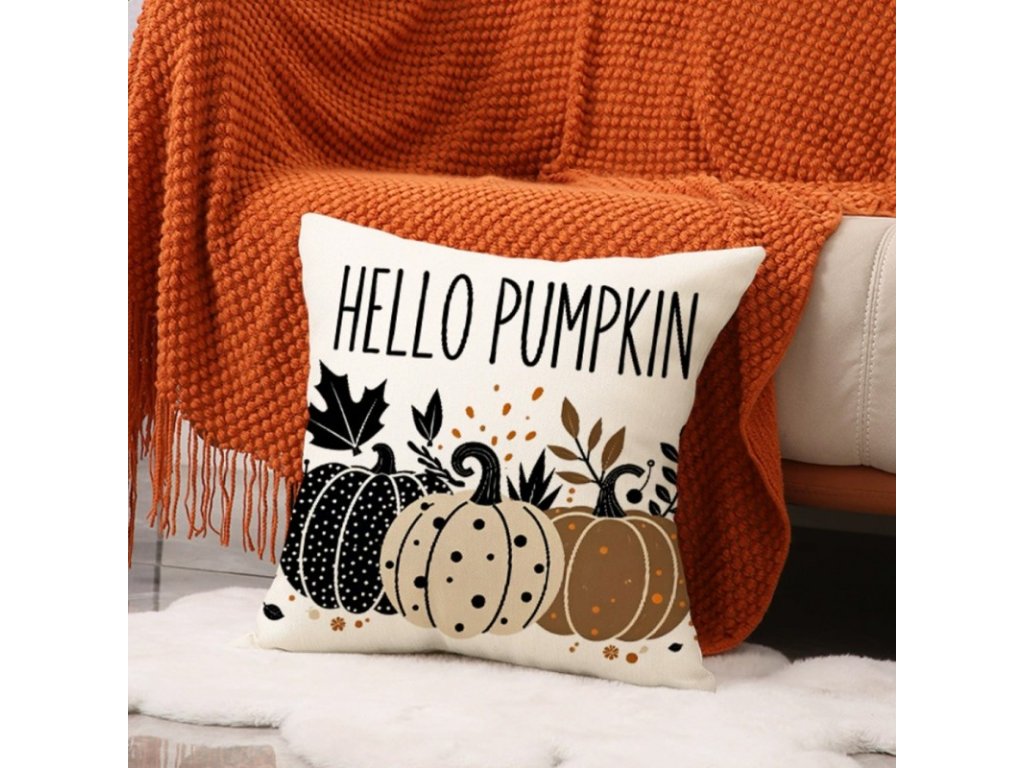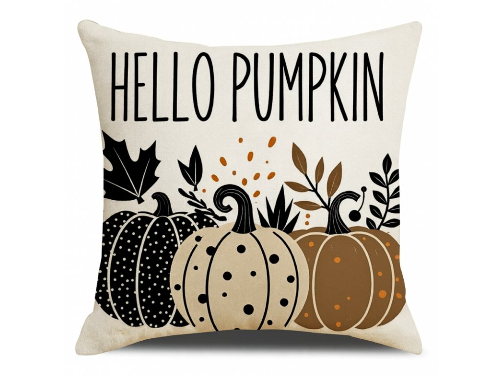 Husa pentru perna HELLO PUMPKIN 45x45 cm, bej