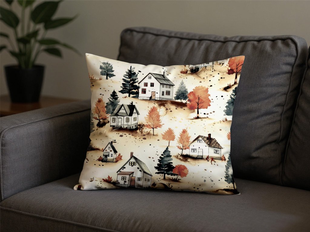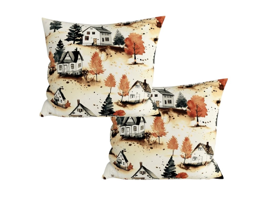 Set 2 bucati huse decorative pentru perna AUTUMN VILLAGE 45x45 cm, colorata