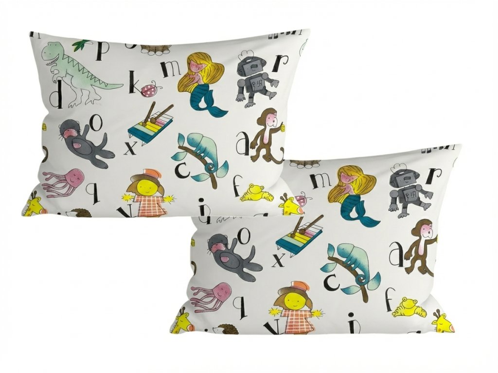 Set 2 huse decorative pentru perna KIDS ALPHABET 40x60 cm, alba