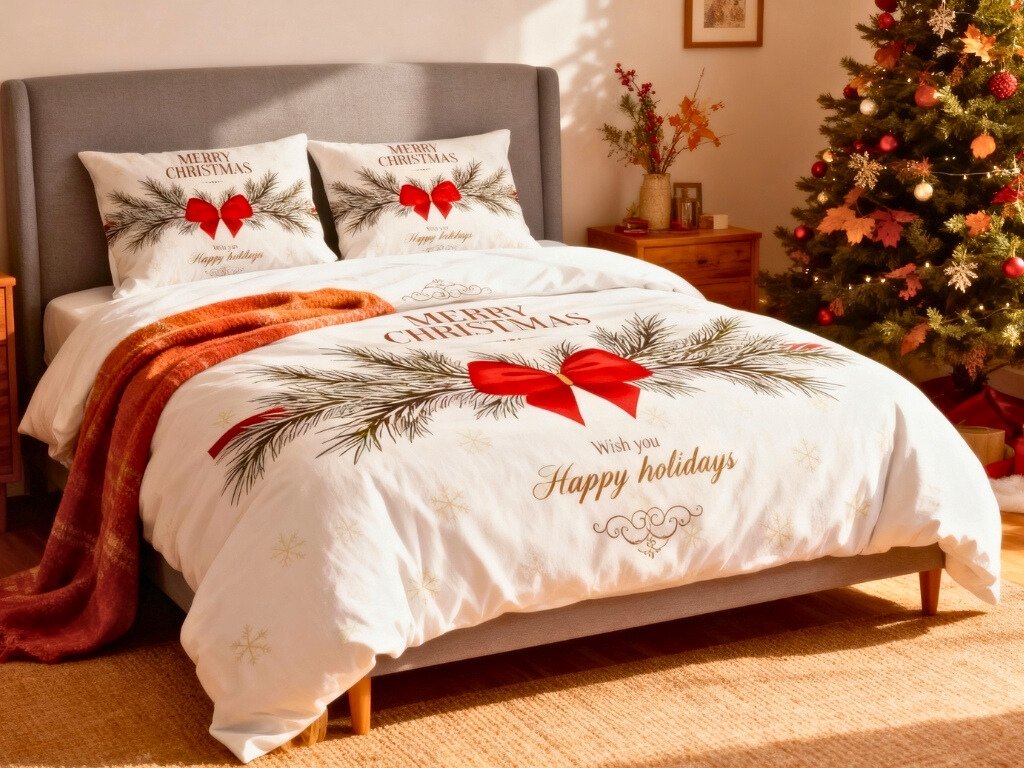 3D Lenjerie de pat din bumbac WISH YOU HAPPY HOLIDAYS crem, 100% bumbac