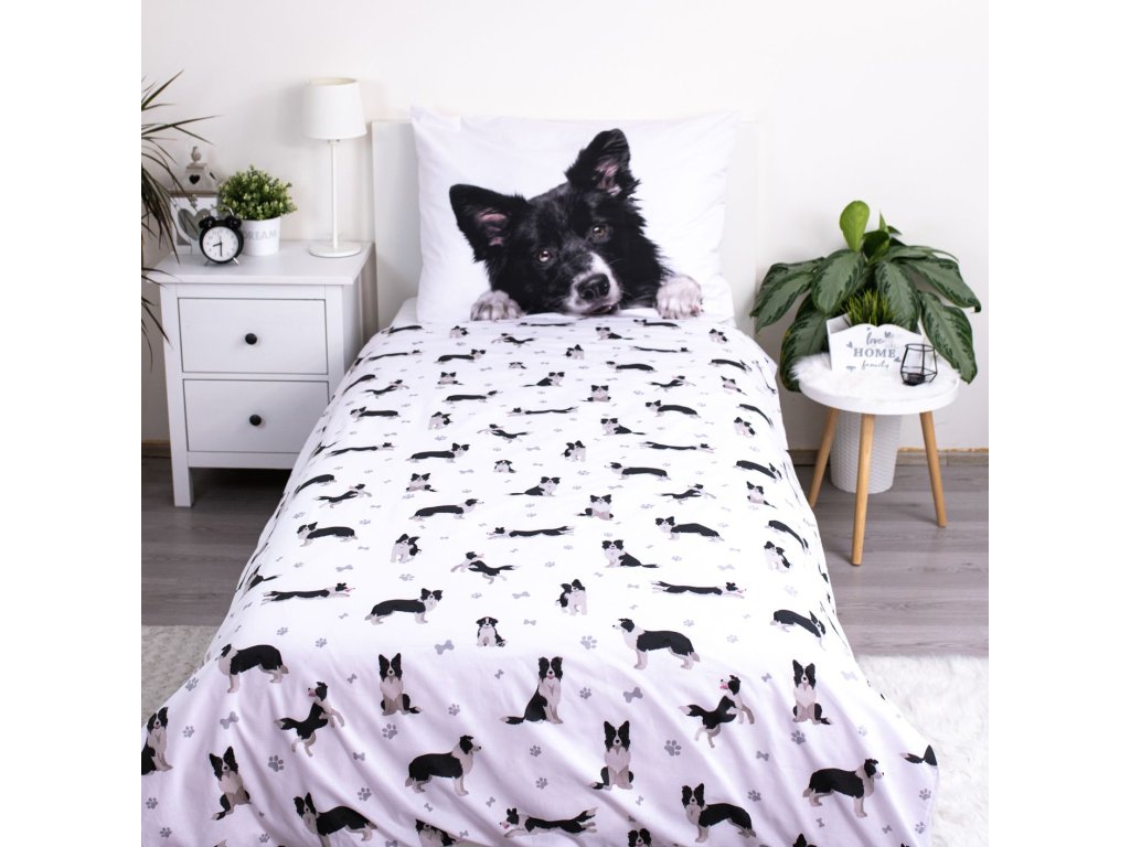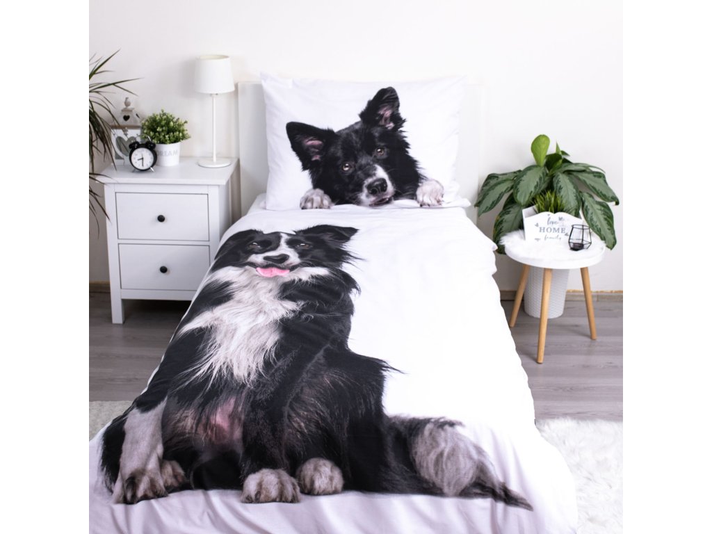 Lenjerie de pat din bumbac 3D BORDER COLLIE alb, 100% bumbac