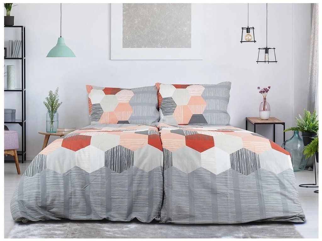 Lenjerie de pat creponata din bumbac Renforce HONEY COMB gri
