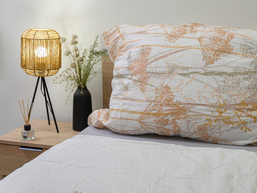 - Lenjerie 140 x 200 cm: 1 husa pentru învelitoare 140 x 200 cm | 1 husa pentru pernă 70 x 90 cm
