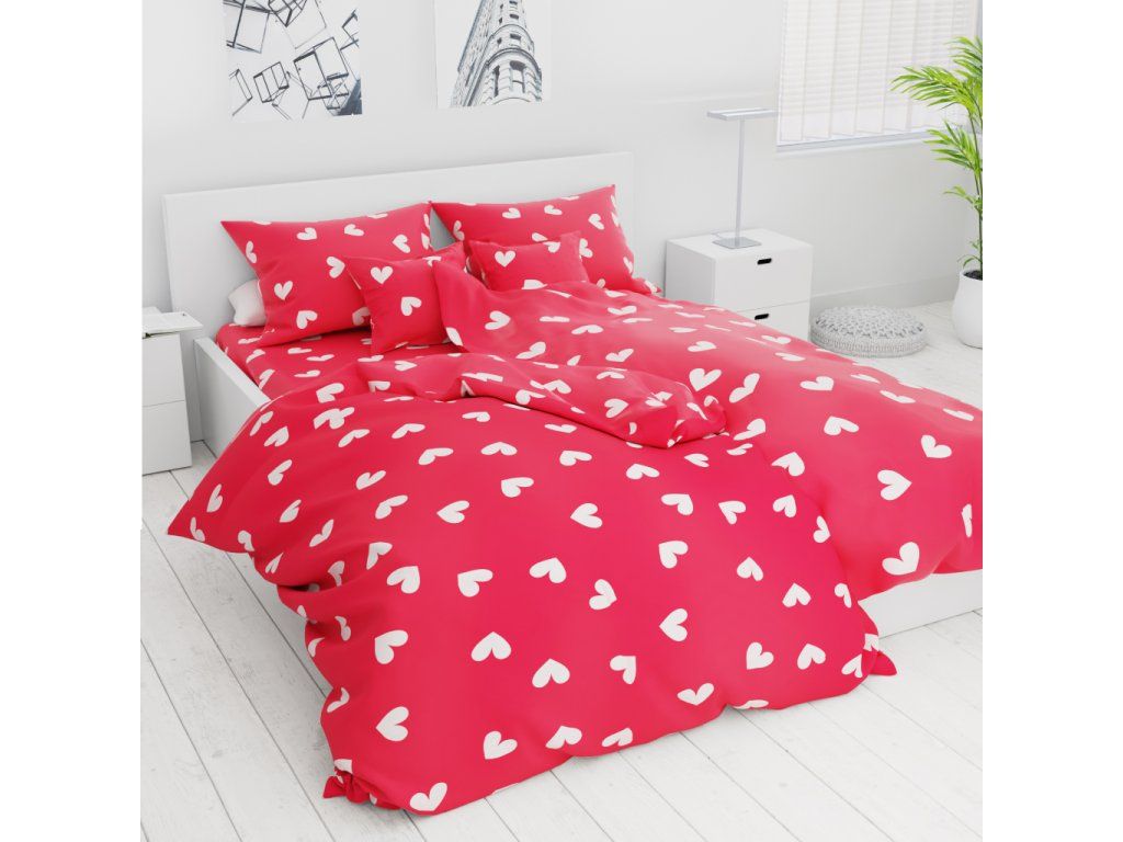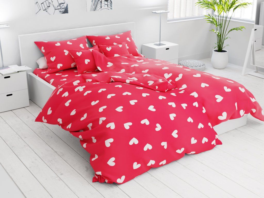 Lenjerie de pat bumbac roșu cu motiv de VALENTINE`S DAY, 7 piese