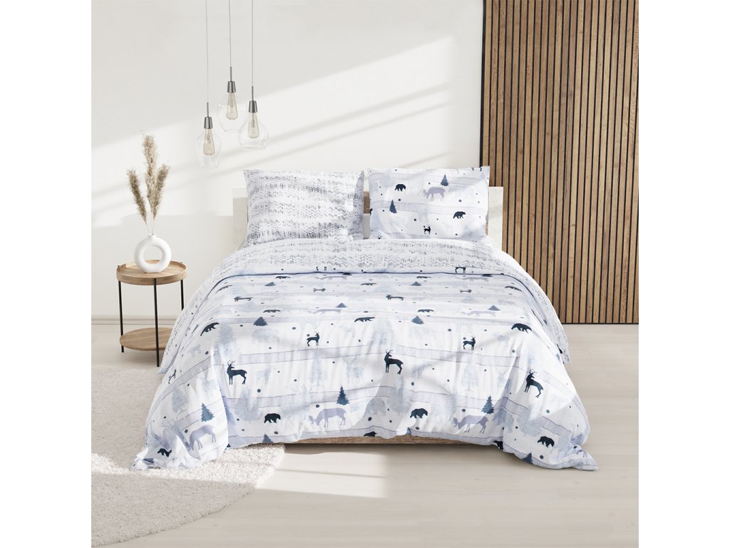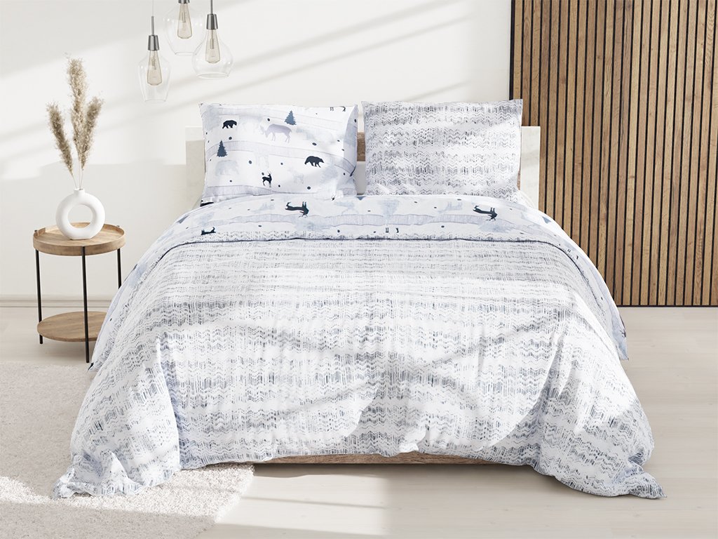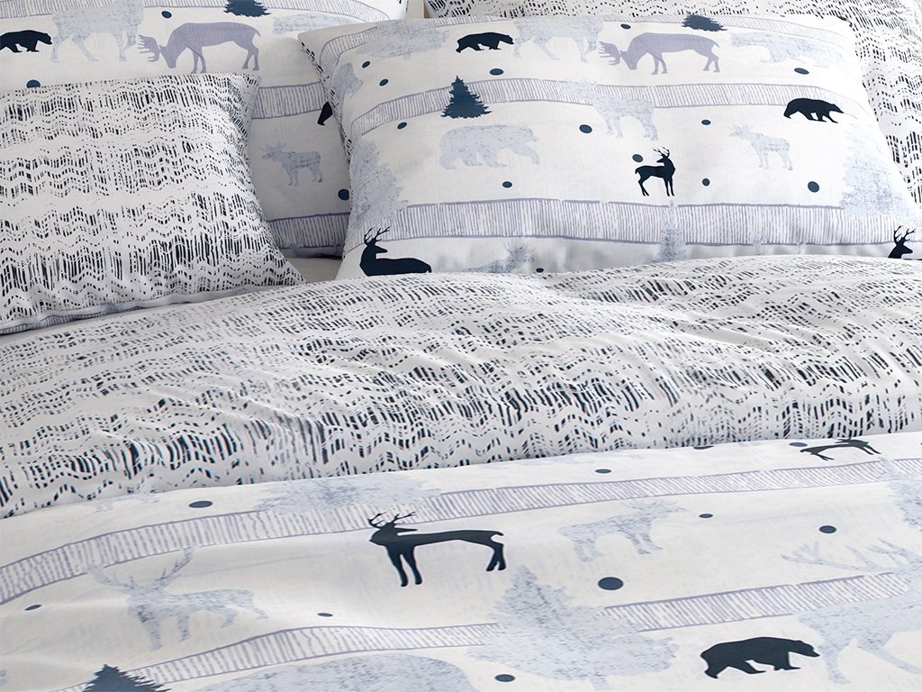 Lenjerie de pat din bumbac alb, REINDEERS AND TREES