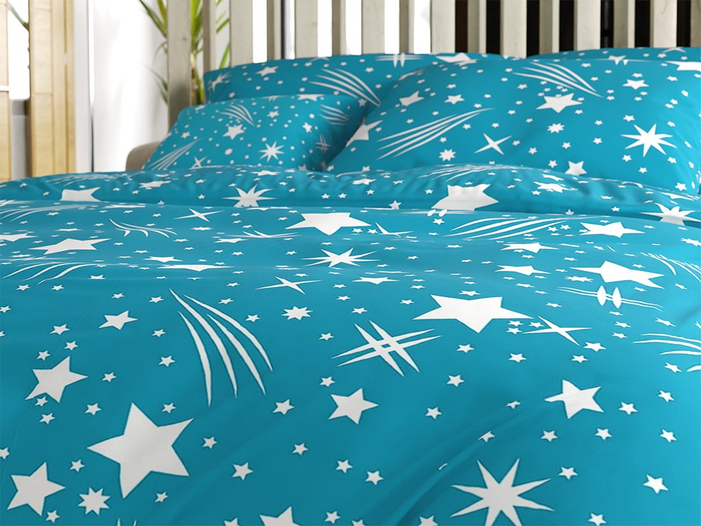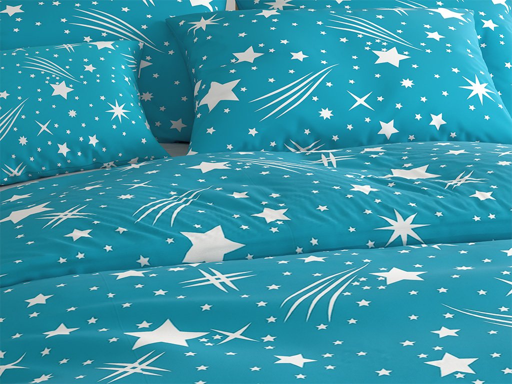 Lenjerie de pat din bumbac Culoare turcoaz, NIGHT SKY