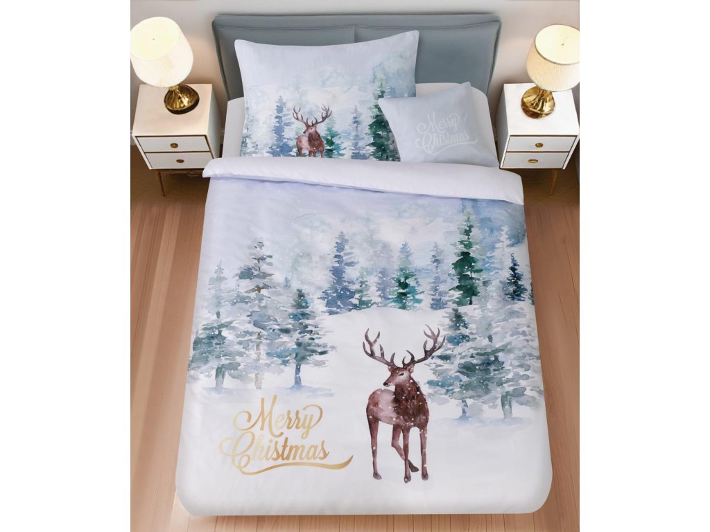 Lenjerie de pat din bumbac DEER SEASON alba + husa pentru perna 45 x 45 cm gratuita