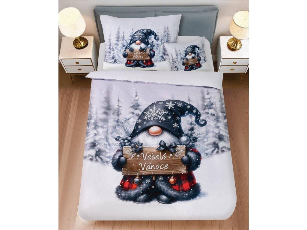 Lenjerie de pat din bumbac JOLLY GNOME alb + husa de pernuta 45 x 45 cm gratuit