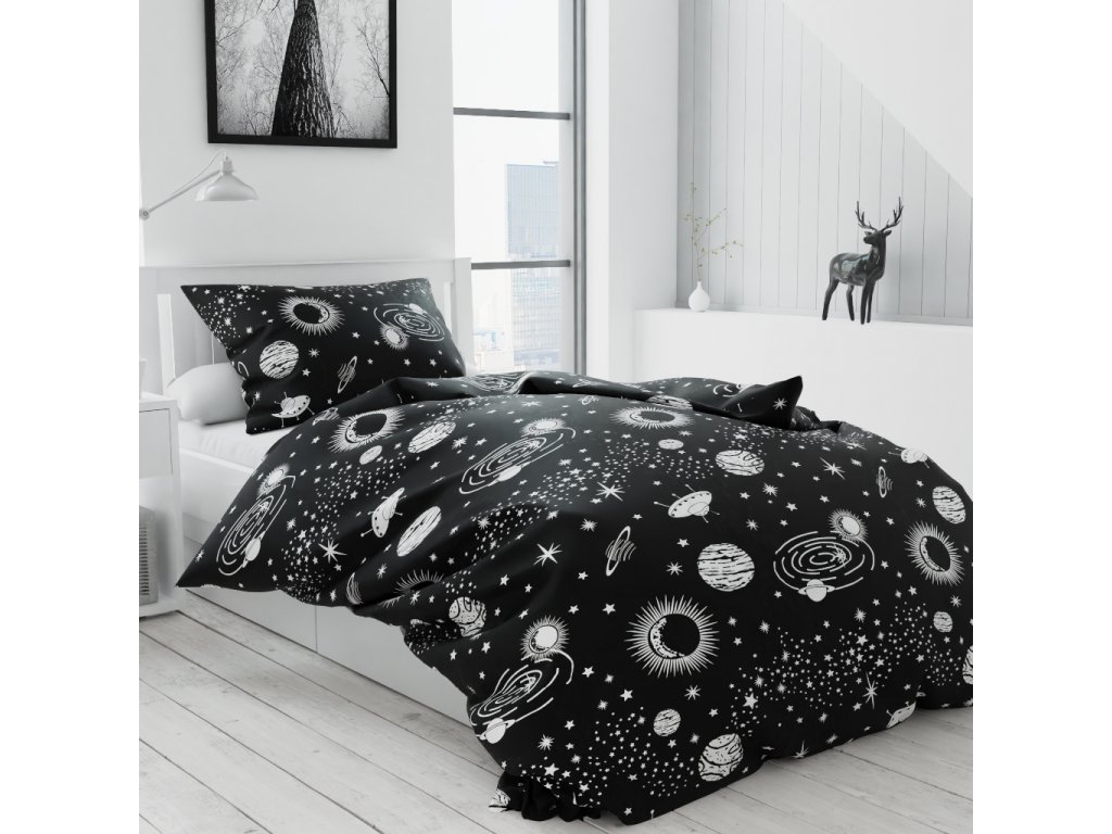Lenjerie de pat din bumbac negru, UNIVERS