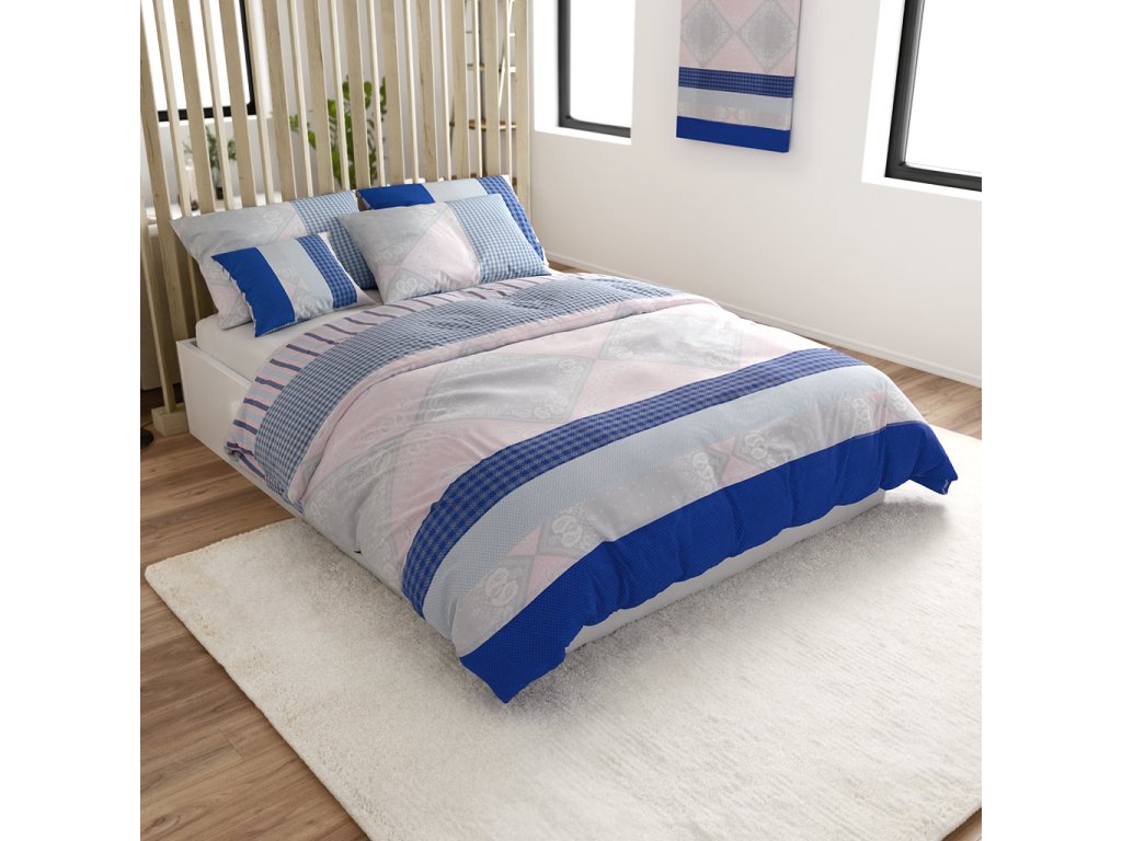 Lenjerie de pat din bumbac Renforcé LUKA albastru